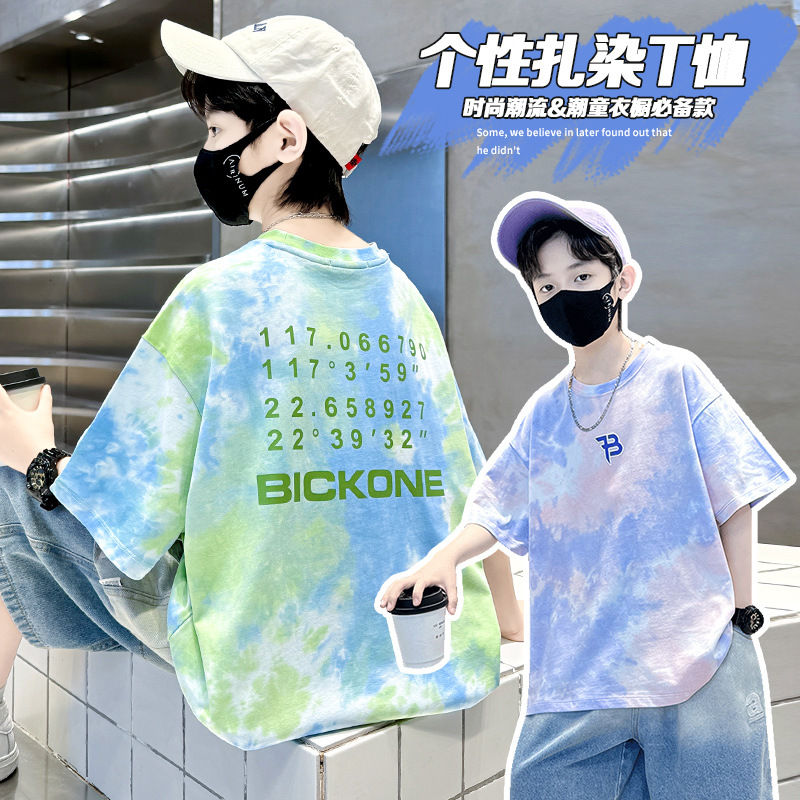 | nameOriginal | Children's Cotton Short-sleeved T-shirt 2024 Summer New Fashion Cool Tie-dyed Student T-shirt Half-sleeved Top All-match 10-year-old 9-year-old |