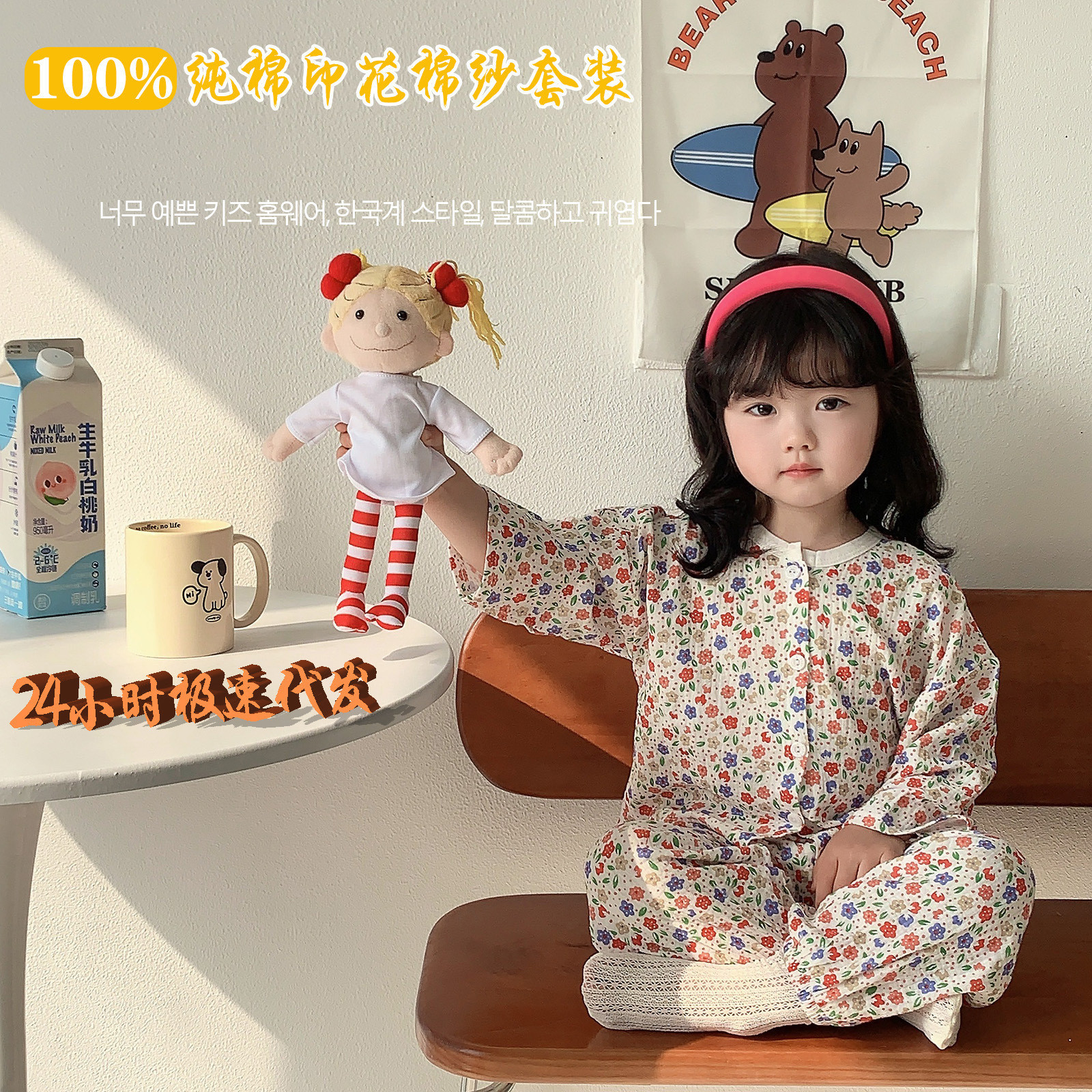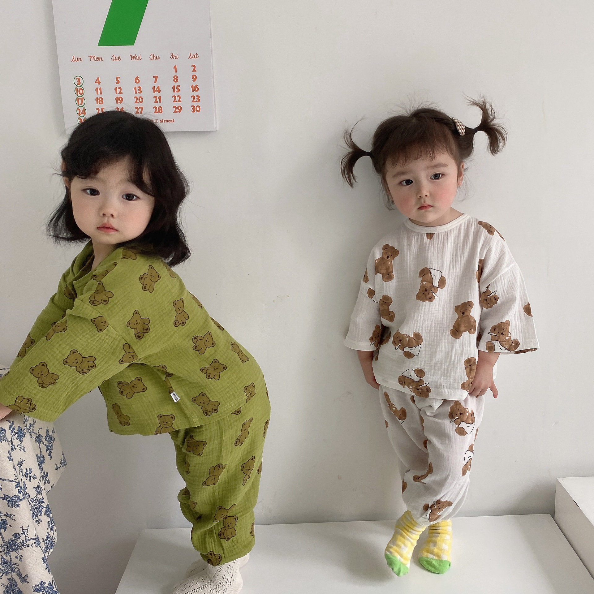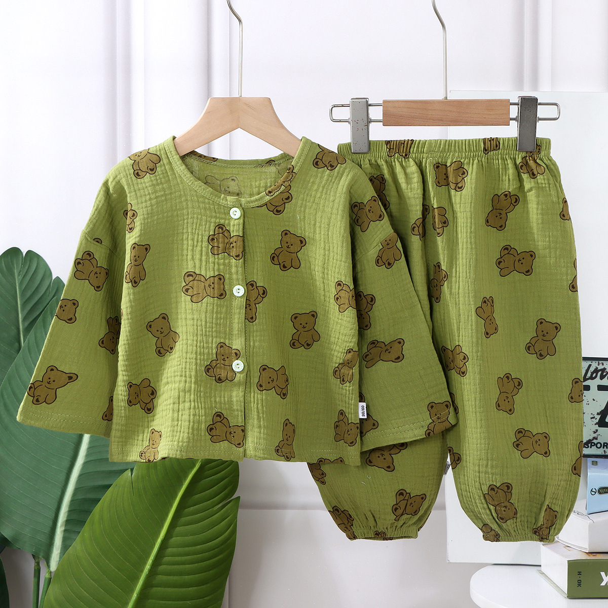 | nameOriginal | Children's Cotton Yarn Cardigan Home Pajamas Summer Cartoon Korean Style Home Clothes Men's and Women's New Air-conditioning Clothes suit |