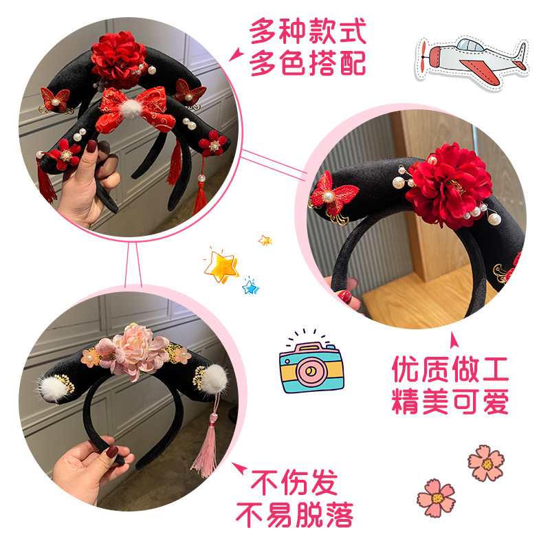 | nameOriginal | Children's Court Imperial Concubine headband cute Hanfu Tang suit Plaid hair accessories mother's flag head face washing headband hair clip headdress |