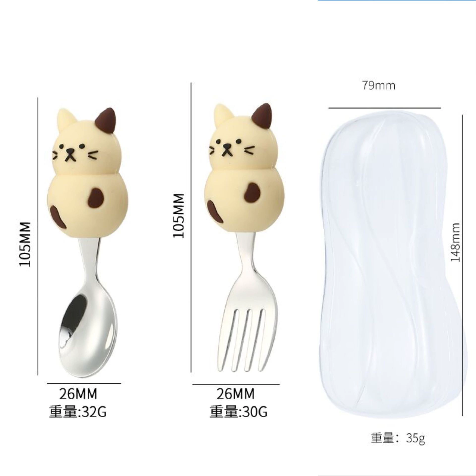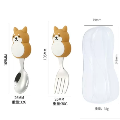 Children’s cute short -handle animal bear eat fork fork spoons 304 stainless steel portable tableware take -out training spoon fork dessert