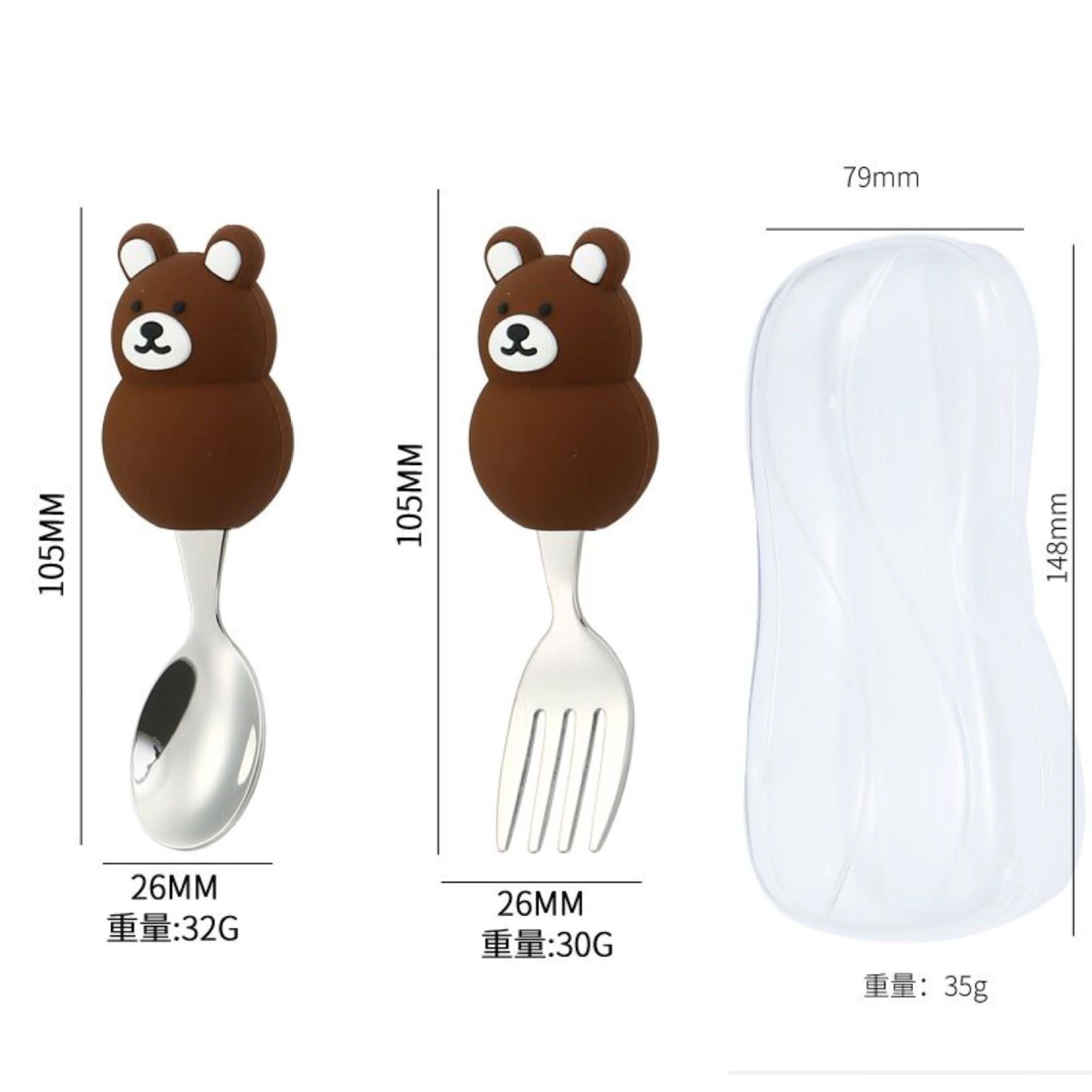 Children's cute short-handled animal bear eating fork and spoon 304 stainless steel portable tableware take-out training spoon and fork dessert