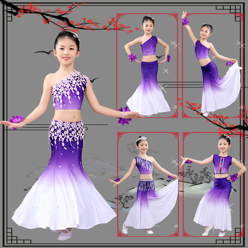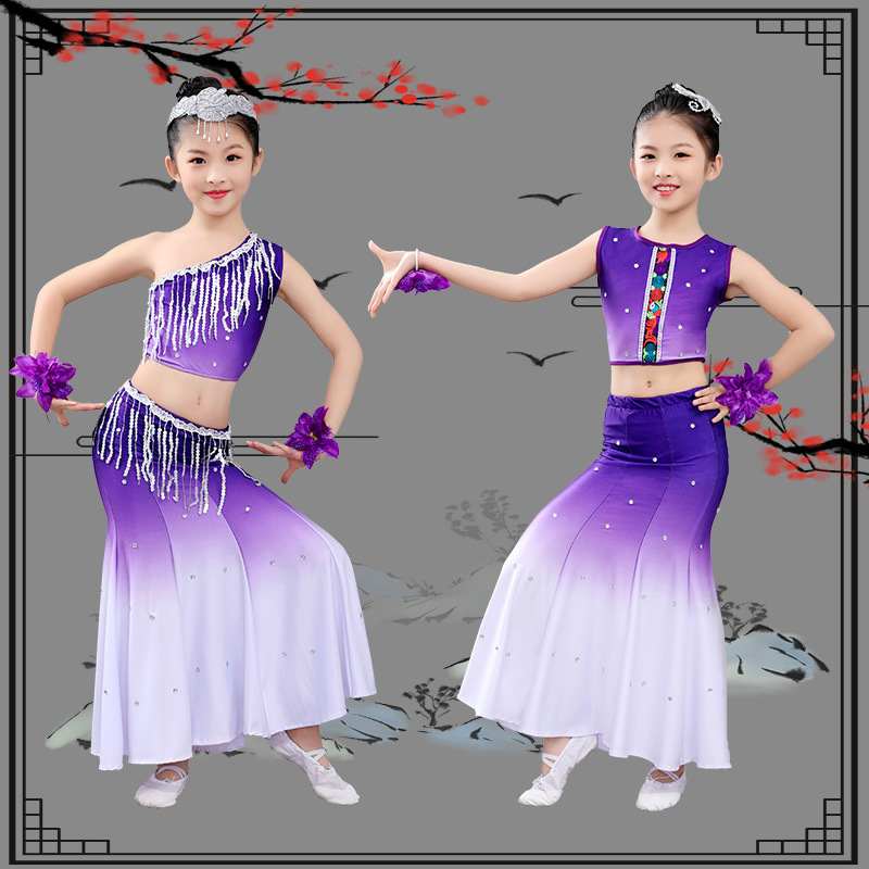 | nameOriginal | Children's Dai Dance Performance Performance Costume Performance Costume Children's Young Children's Female Peacock Dance Fishtail Skirt South of Colorful Clouds |