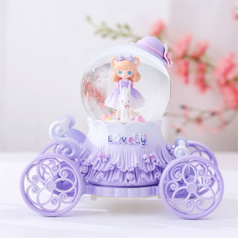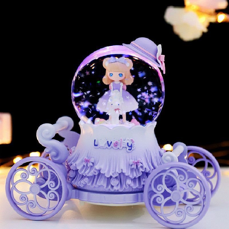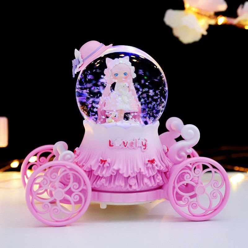 Children’s Day Girls Crystal Ball Music Box Princess Carriage Rotating Music Box Girls Birthday Gift