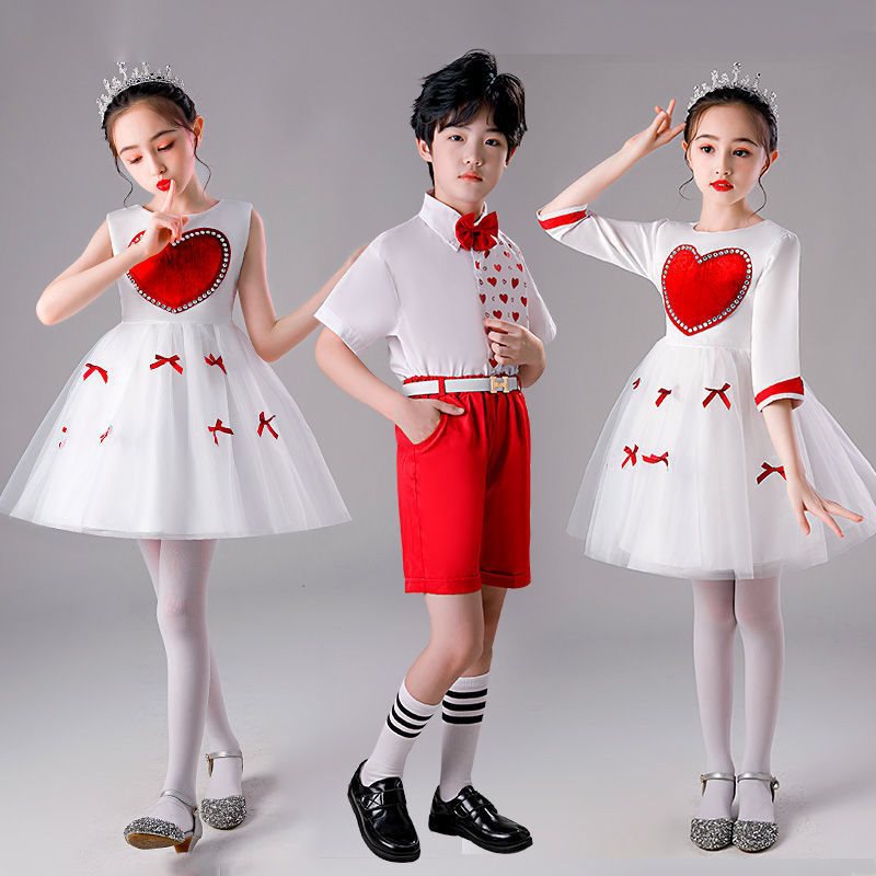 Children's Day Performance Costume Children's Day Primary and Secondary School Students Chorus Costume Poetry Recitation Costume Little Princess Dress Poncho Dress