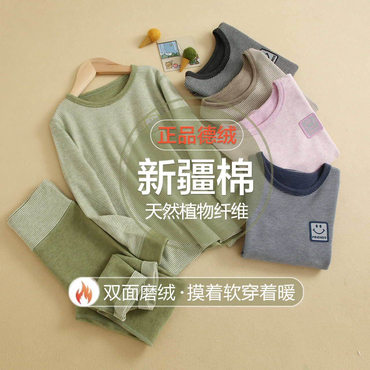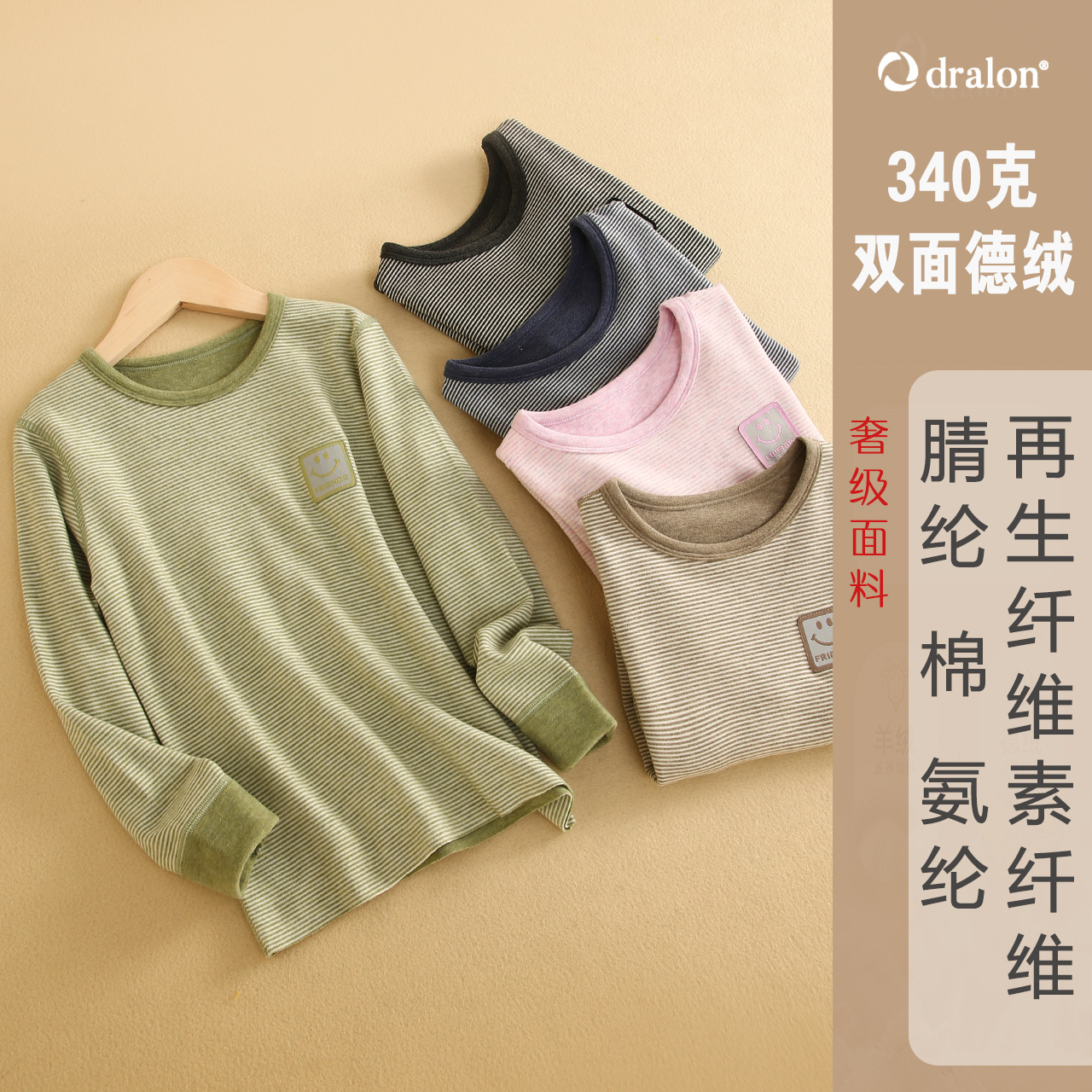 | nameOriginal | Children's De velvet thermal underwear striped middle and big children's bottoming clothes seamless double-sided wear fleece-lined round neck autumn clothes |