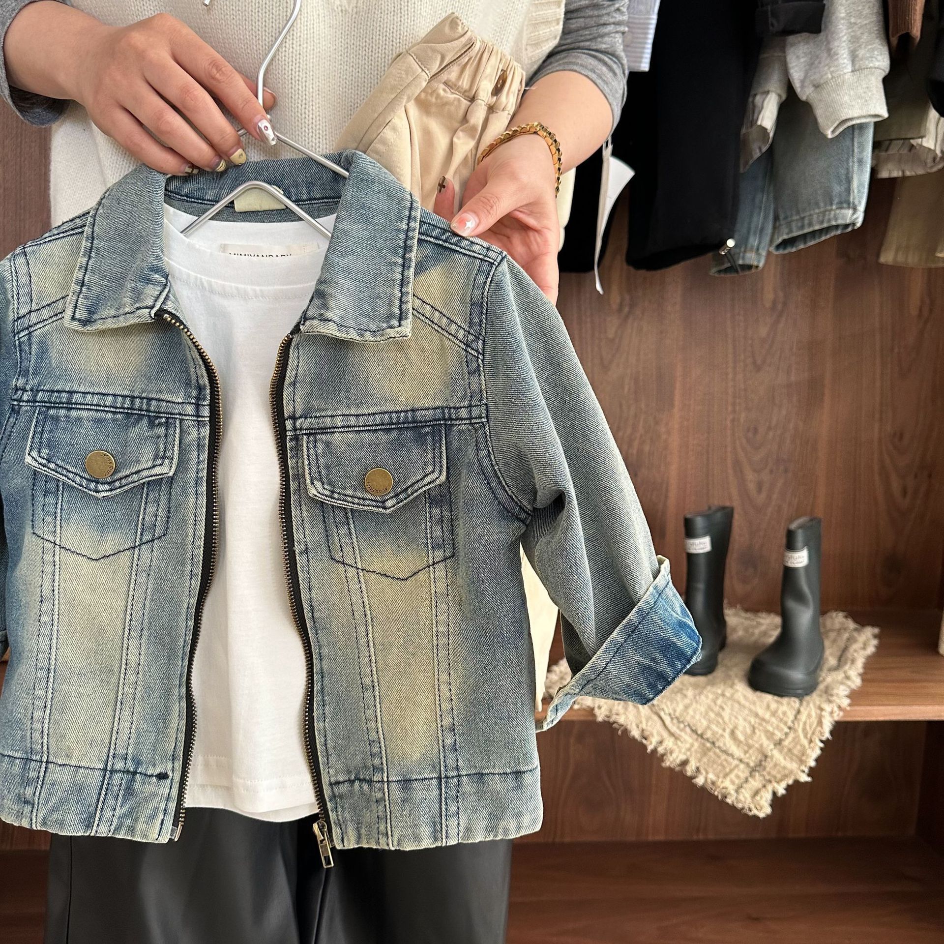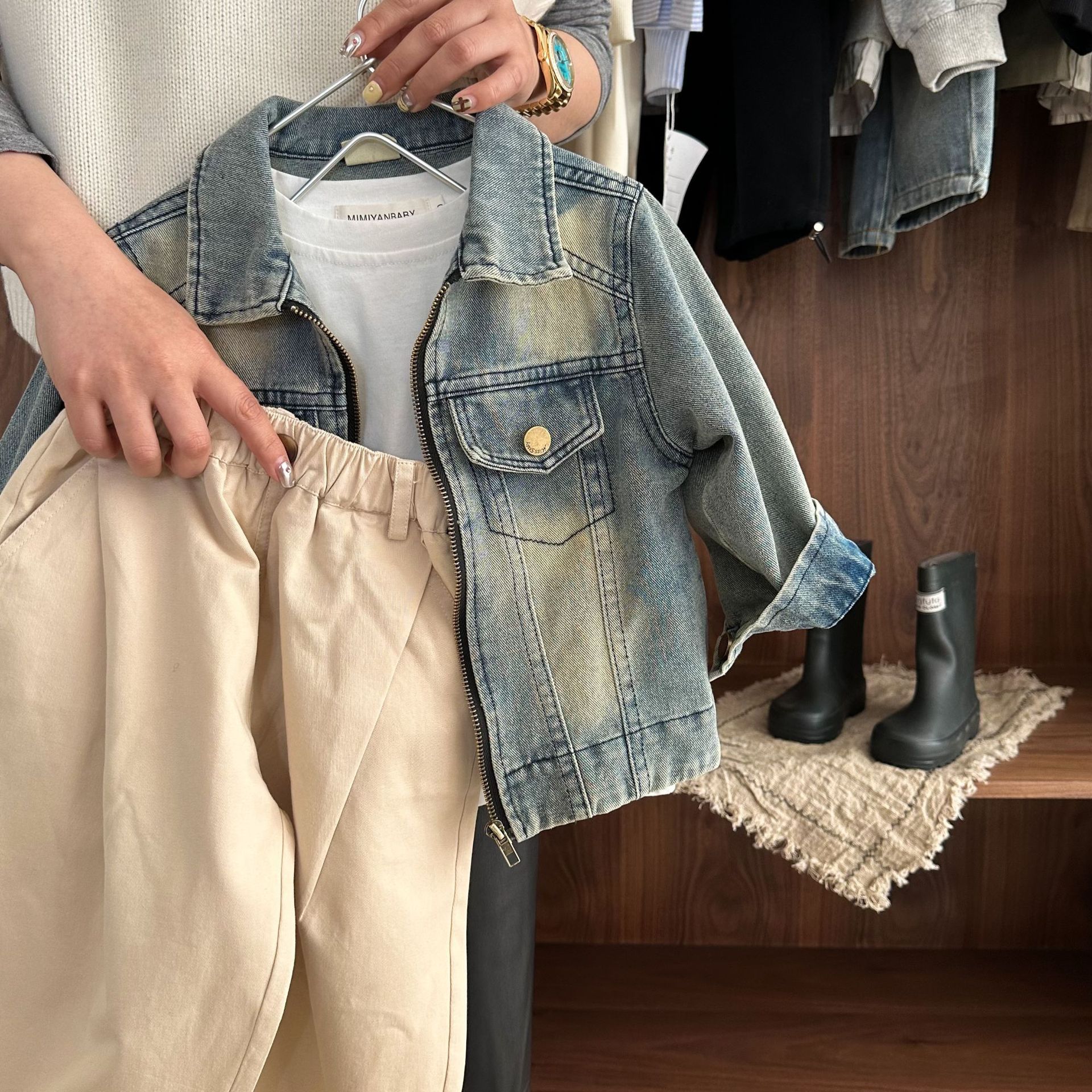 | nameOriginal | Children's Denim Coat 2024 Autumn New Boys and Girls Vintage Denim Coat Baby All-match Zipper Top |