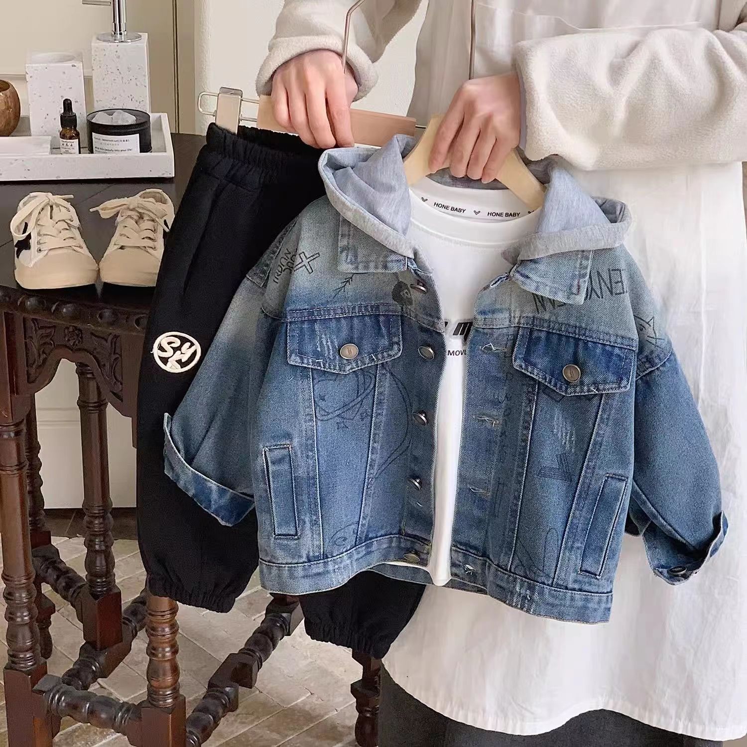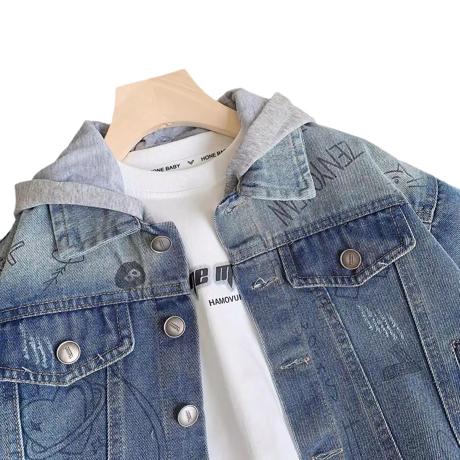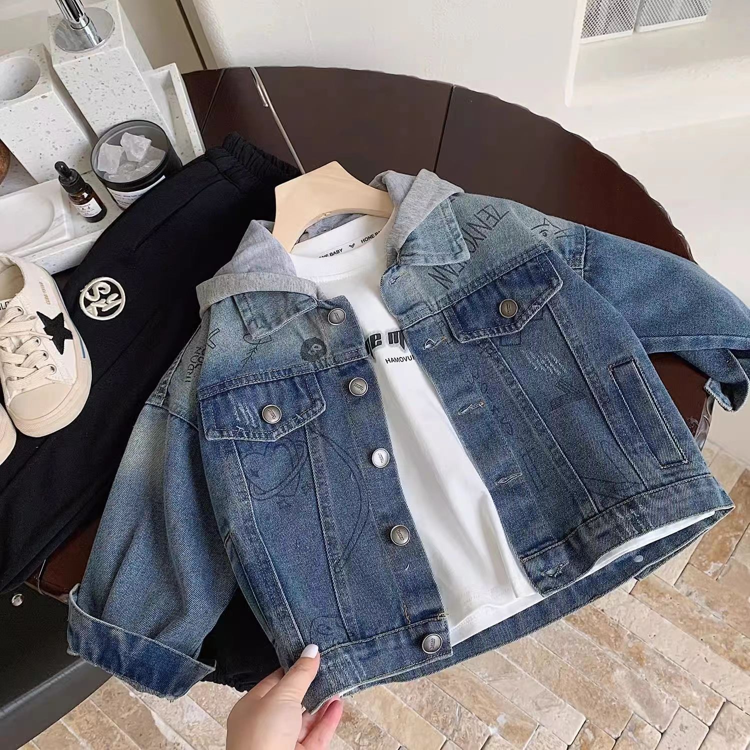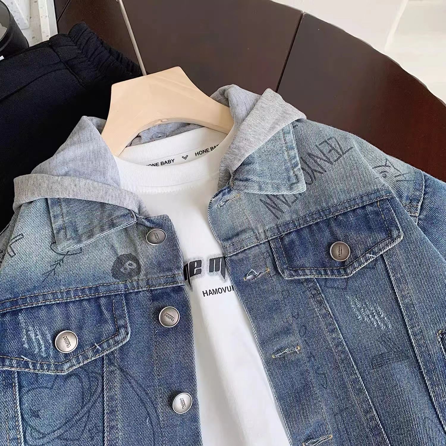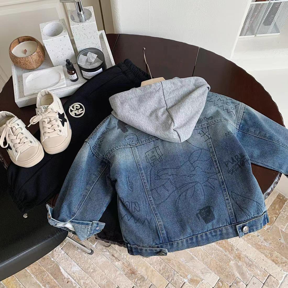 Children’s Denim stitching coat 2-7 years old autumn boys’ hooded long-sleeved shirt baby handsome denim clothes DY015