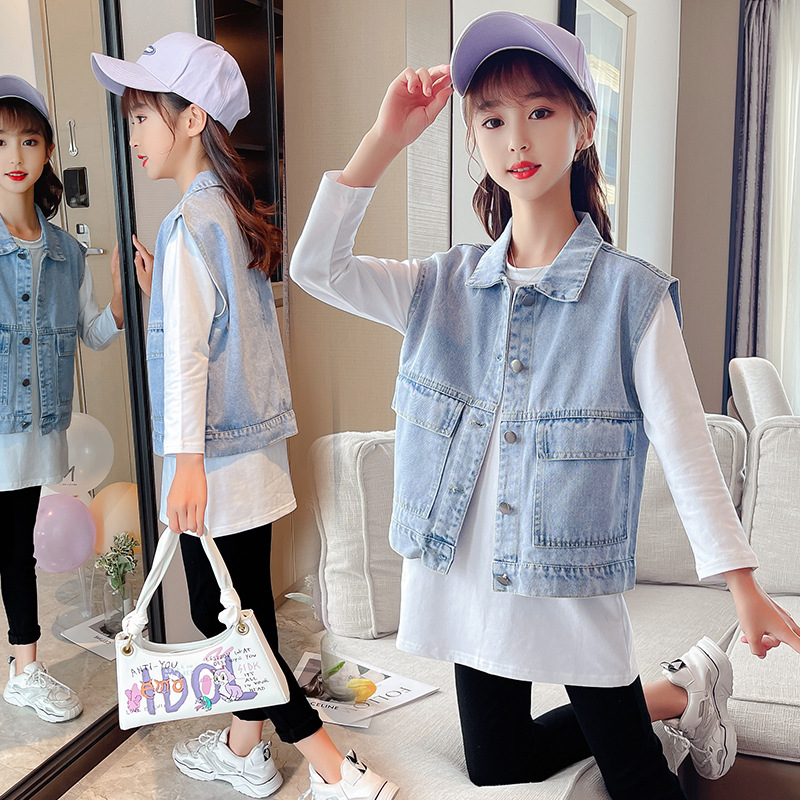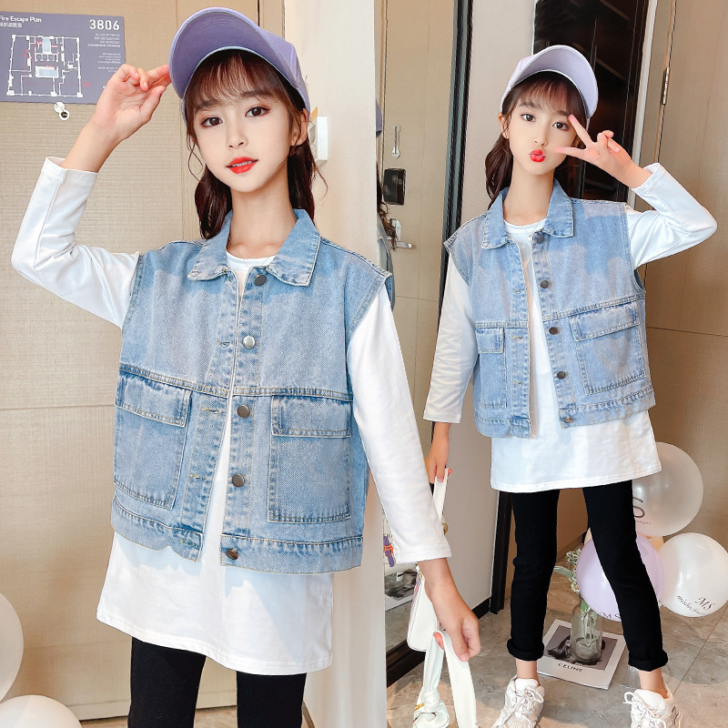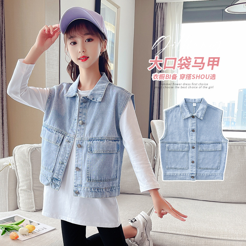 | nameOriginal | Children's Denim vest top 2024 spring new girls Korean version of the spring and autumn waistcoat solid color denim jacket |