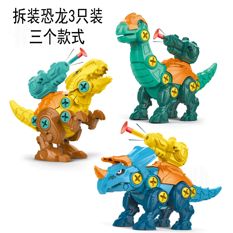 Children's disassembly and assembly of dinosaur puzzles for early education and enlightenment plastic assembly toys with screws and detachable Tyrannosaurus rex with launch