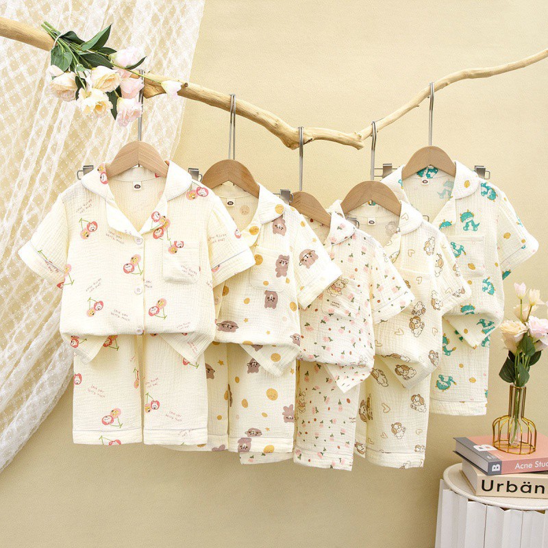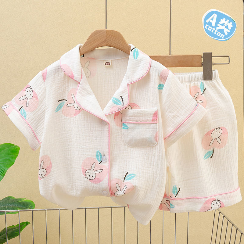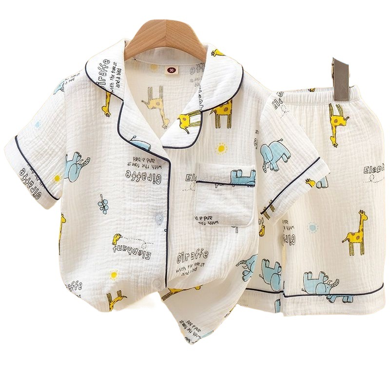 | nameOriginal | Children's Double-layer Cotton Short-sleeved Shorts Air-conditioning Clothing Boys and Girls Summer Thin Pajamas Cardigan suit Home Clothes |