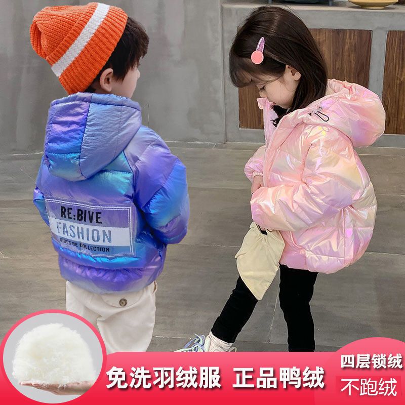 Children's Down Jacket Boys and Girls Warm Colorful Duck Down Jacket Autumn and Winter New Hooded Baby Children's Clothing Solid Color Top