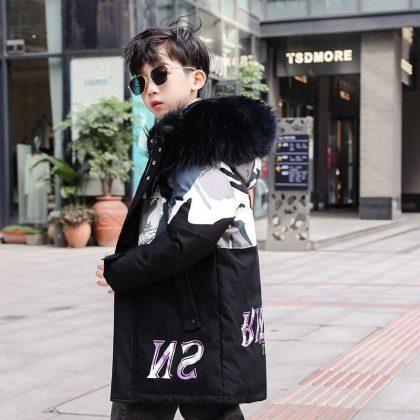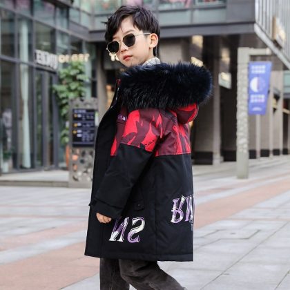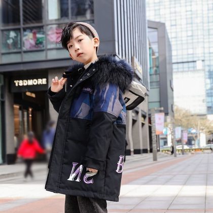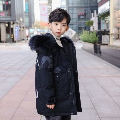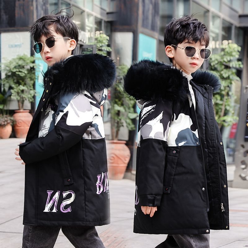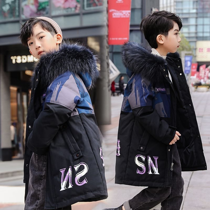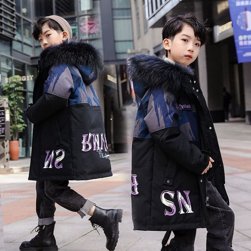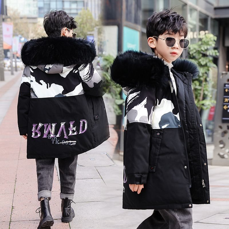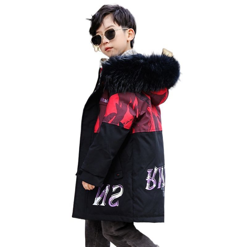 Children's Down Jacket Boy's Mid-length 2023 New Style Western Style Boy's Big Boy's Winter Thickened Hooded Jacket