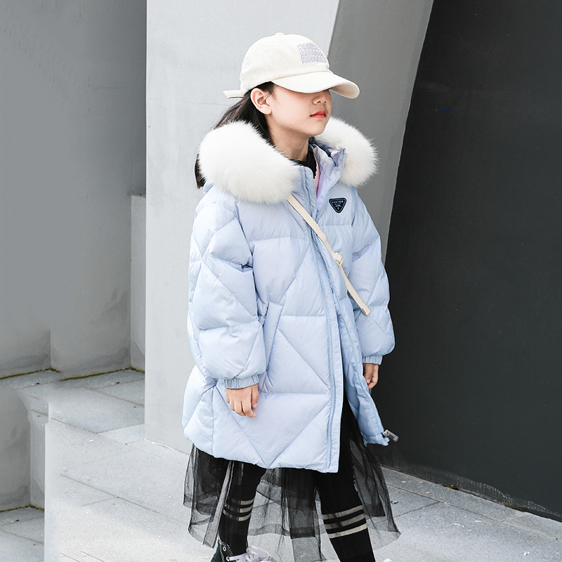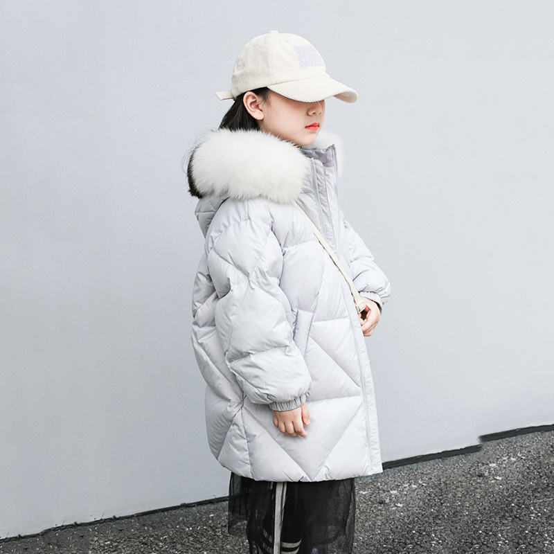 Children's down jacket mid-length thickened 2023 Winter New girls' down jacket medium and large children's coat 22158