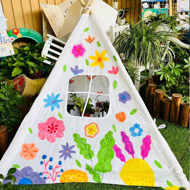 Children’s drawing triangle tent graffiti tent children’s outdoor hand-painted graduation season diy white small tent