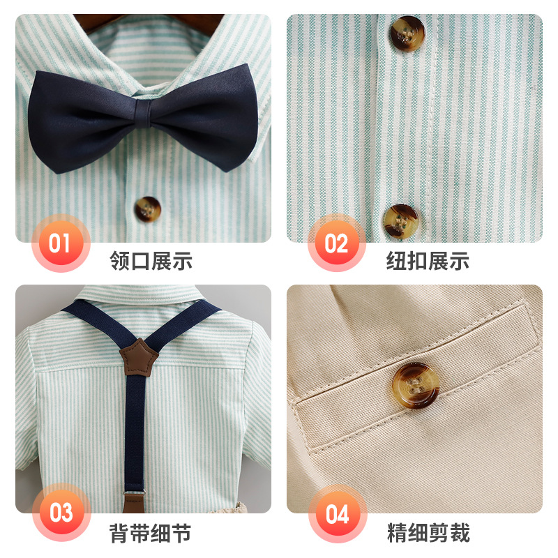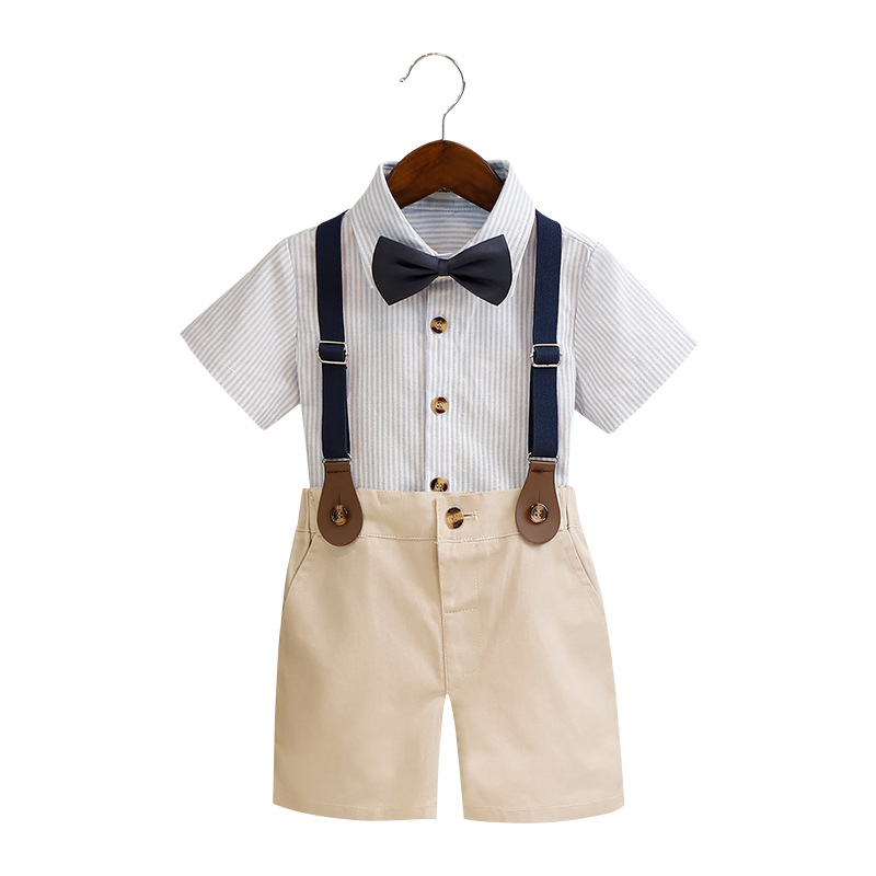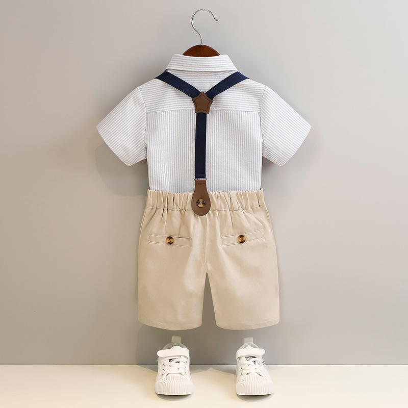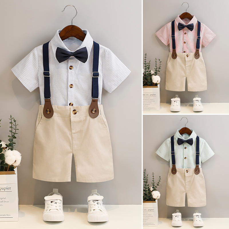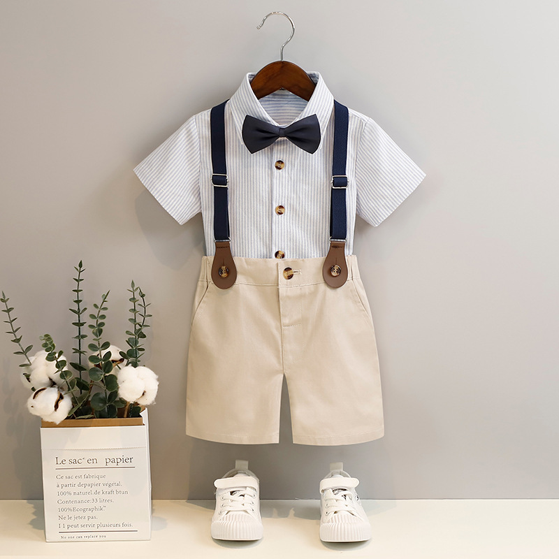 | nameOriginal | Children's Dress Spring and Summer New Boys' Striped Strap Pants Two-piece Set Baby's Birthday Short-sleeved Shirt Set |