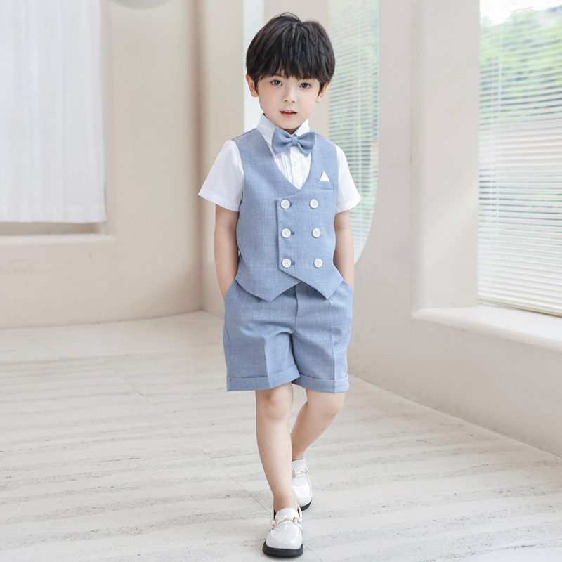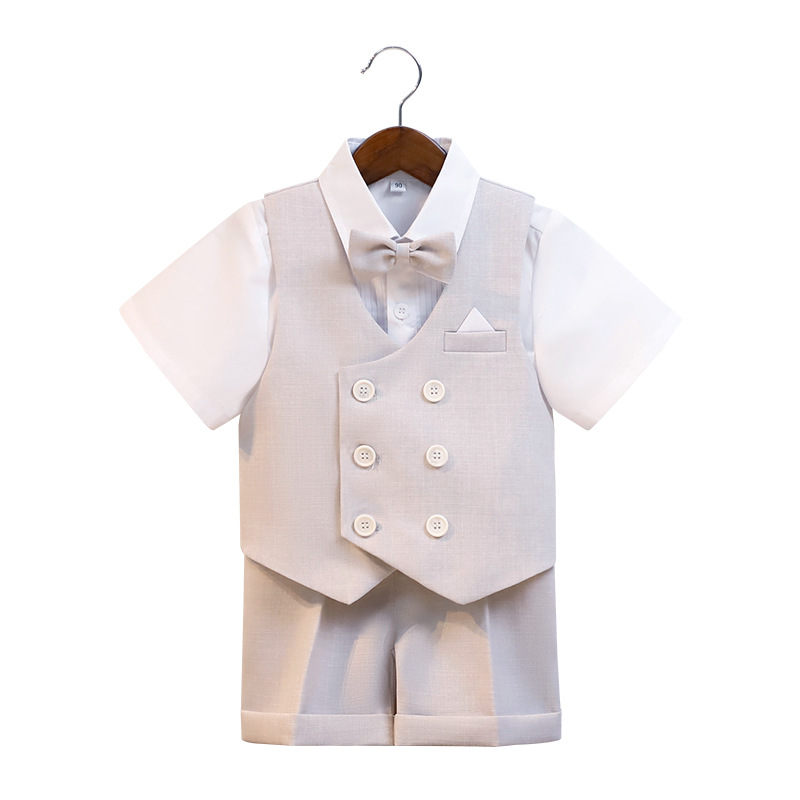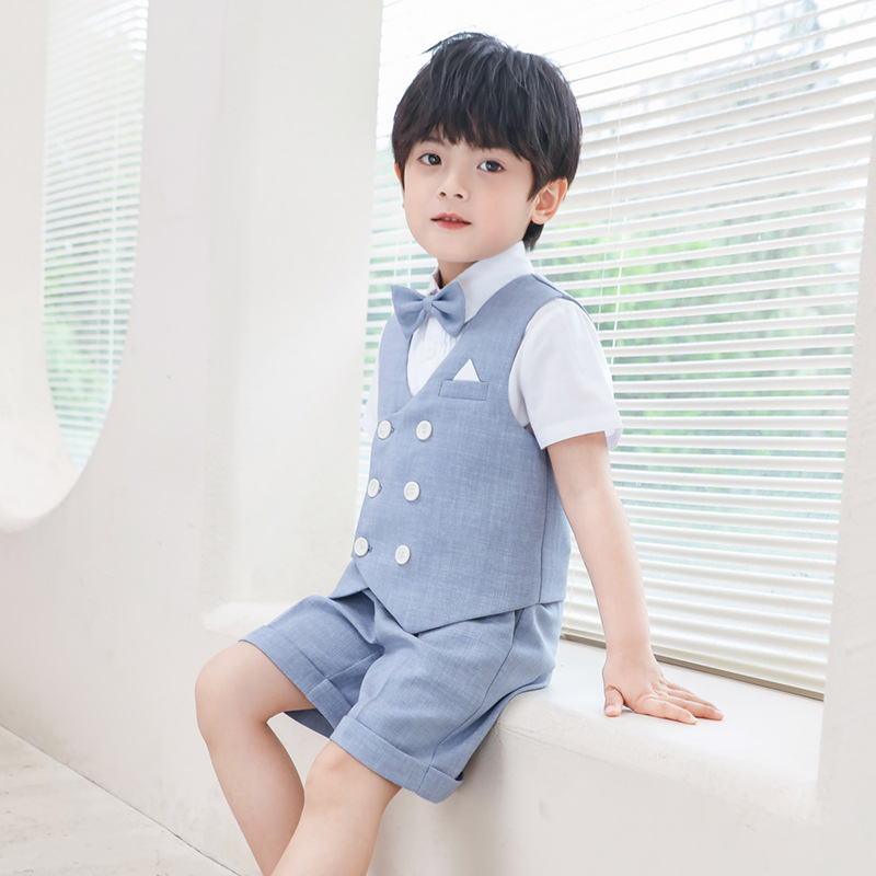 | nameOriginal | Children's Dress Summer New Short-sleeved Fashion Vest Suit Baby One-year-old Flower Boy Wedding Host Performance Dress |