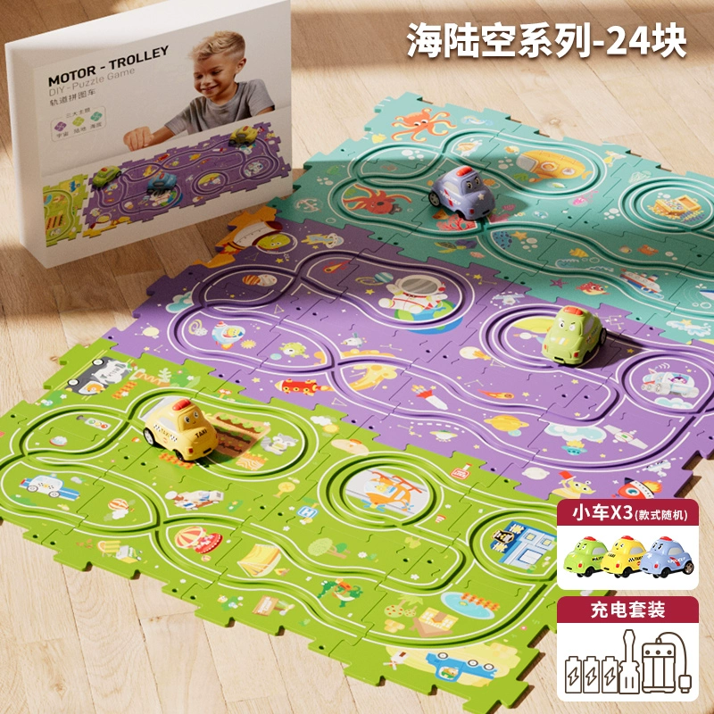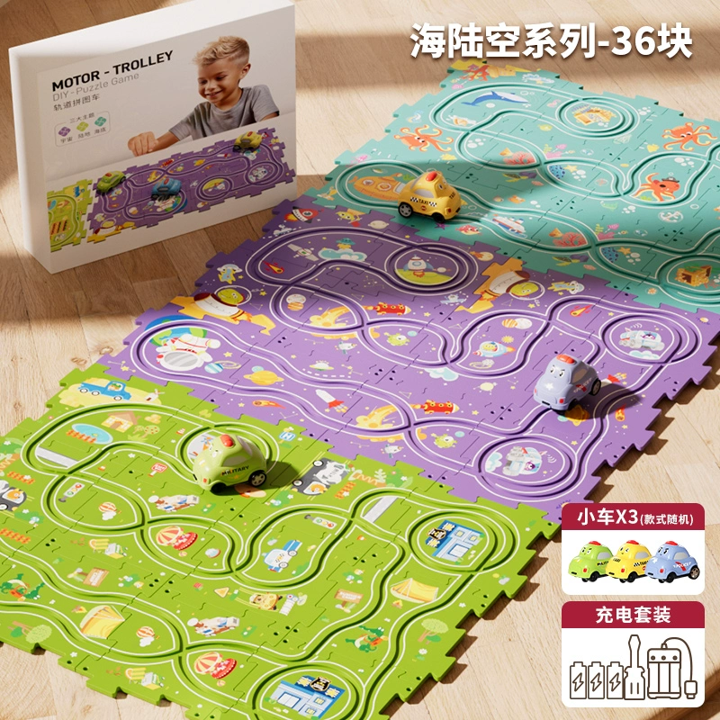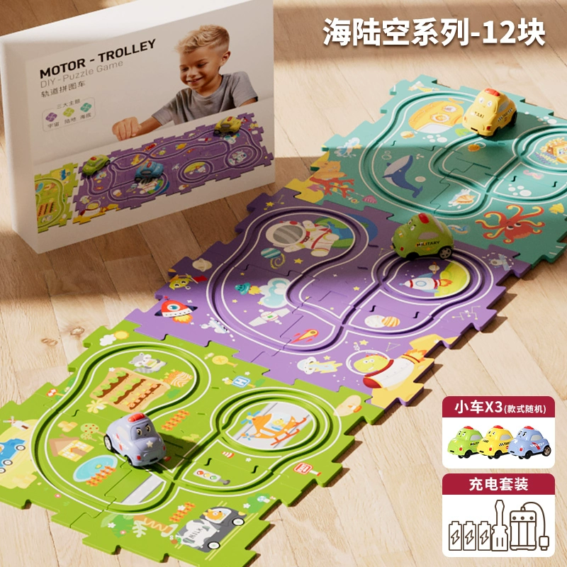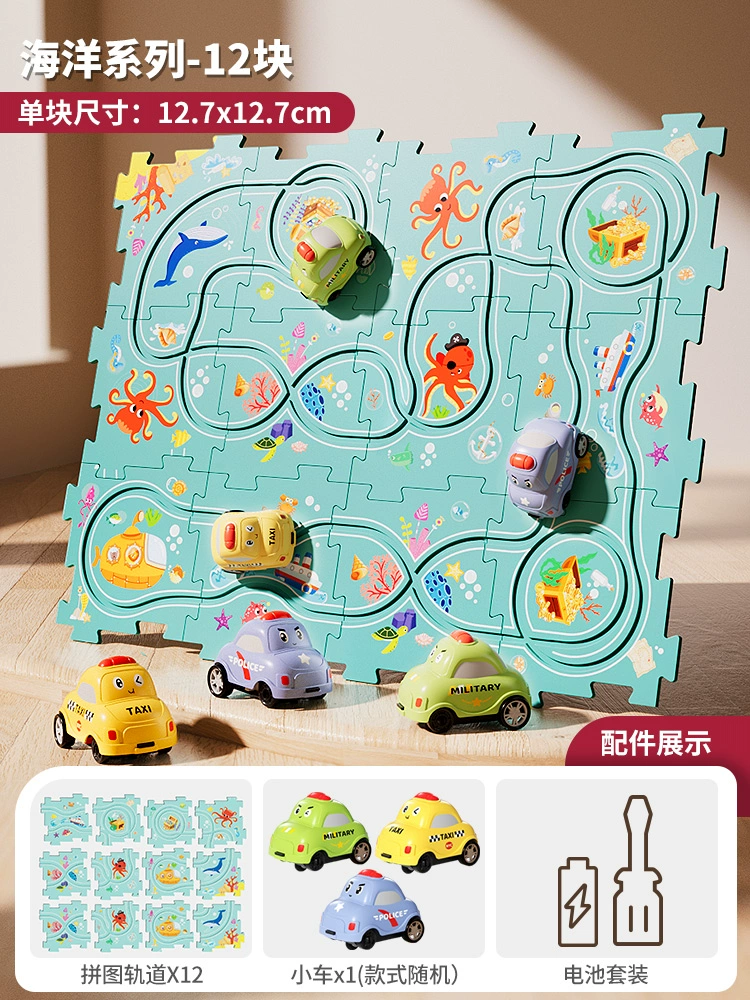 Children’s educational puzzle track car DIY assembled electric train track sliding toy for boys 3 to 6 years old 2