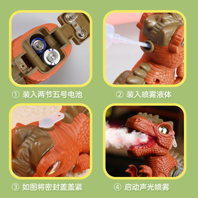 | nameOriginal | Children's electric fire-breathing dinosaur spray gun net red hot selling sound and light simulation Tyrannosaurus rex boys and girls toy stall batch |
