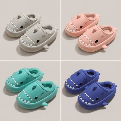 Children’s eva Slippers Autumn and Winter Soft Bottom Household Three-dimensional Cartoon Shark Cotton Slippers Indoor Baby Waterproof Thick Bottom Slippers