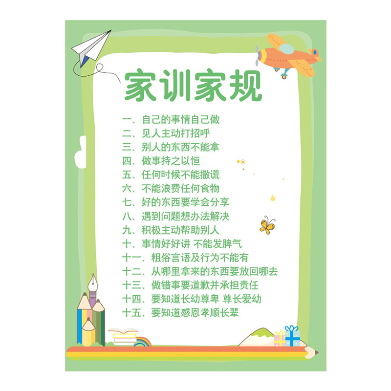 | nameOriginal | Children's family rules Family Training wall stickers elementary school students inspirational Tsinghua mother quotations slogan family Education Full version |