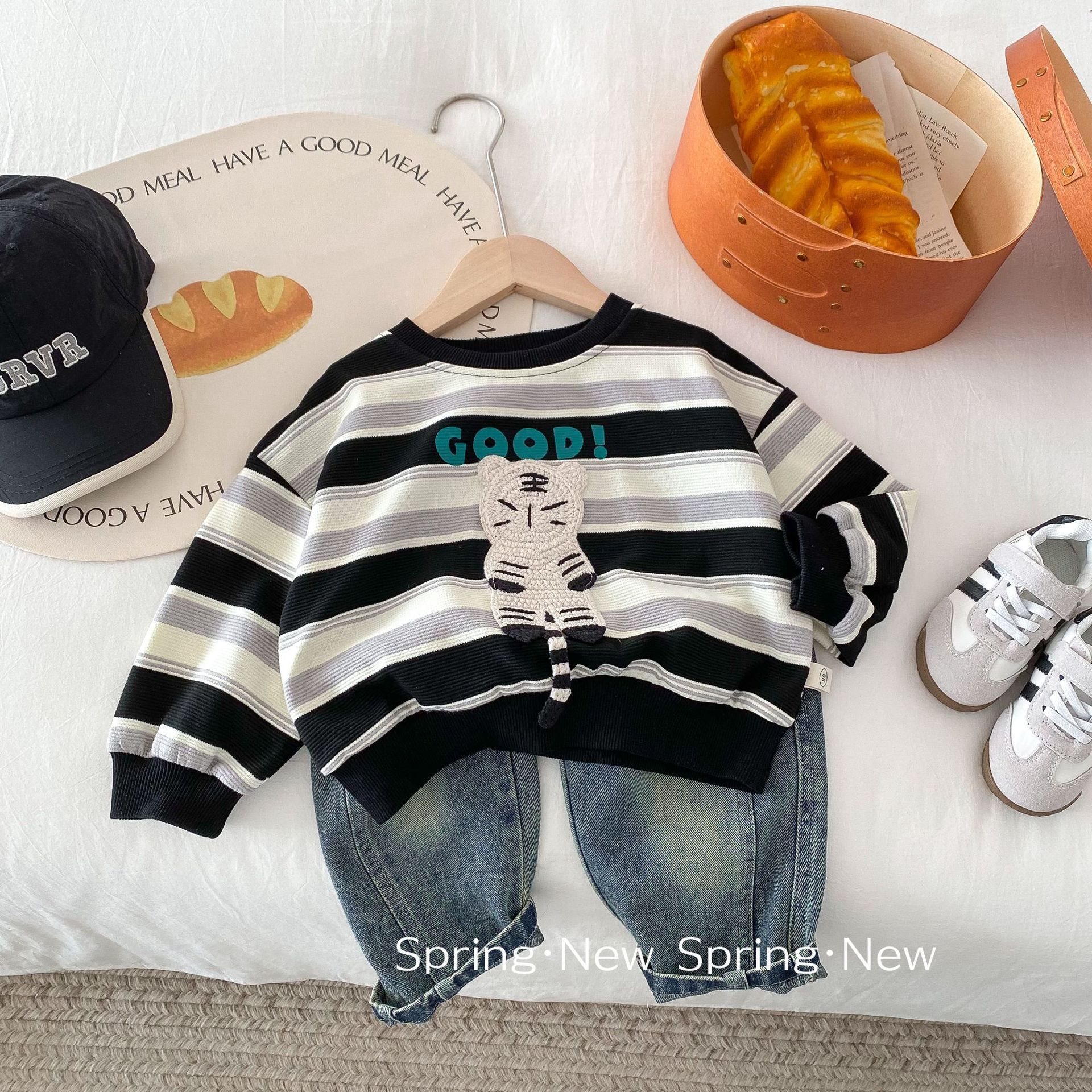 | nameOriginal | Children's fashion sweater 1-7 years old boy's spring letter striped top male baby label pullover tide DY138 |