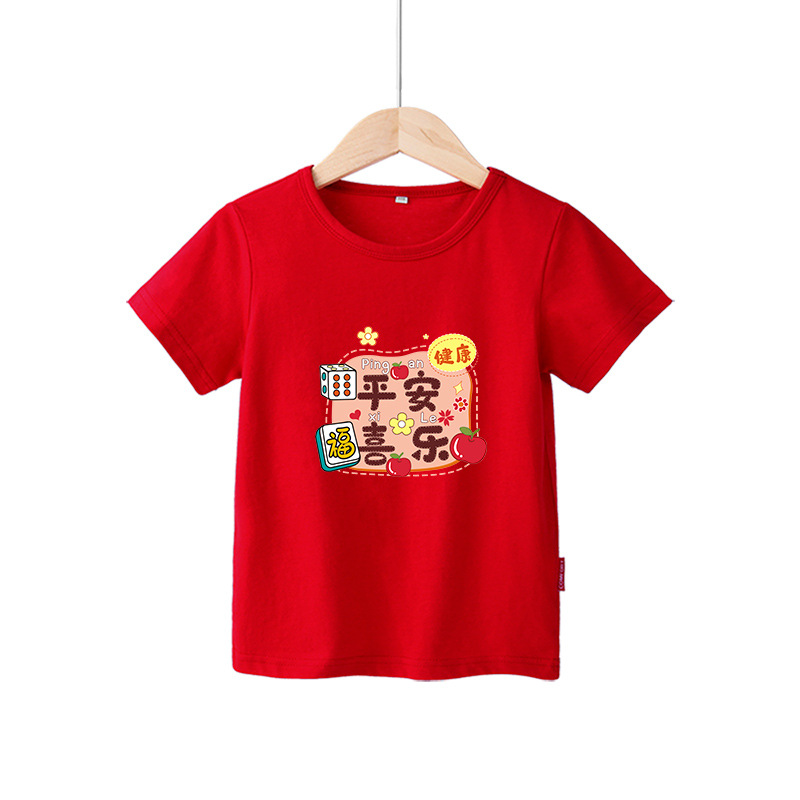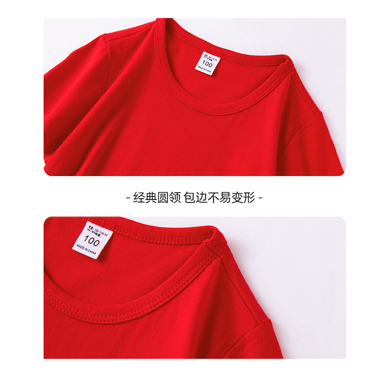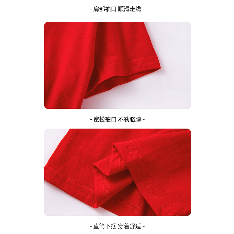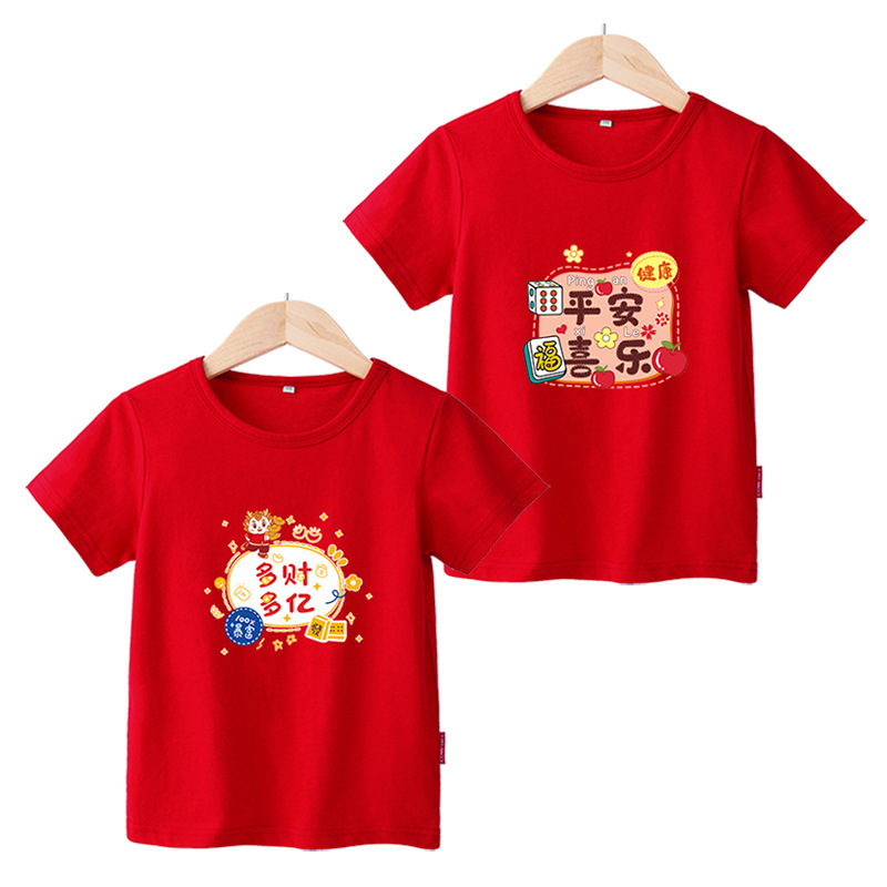 | nameOriginal | Children's festive blessing clothing bright red Boys' short-sleeved T-shirt pure cotton girls' student performance clothes boys and girls |