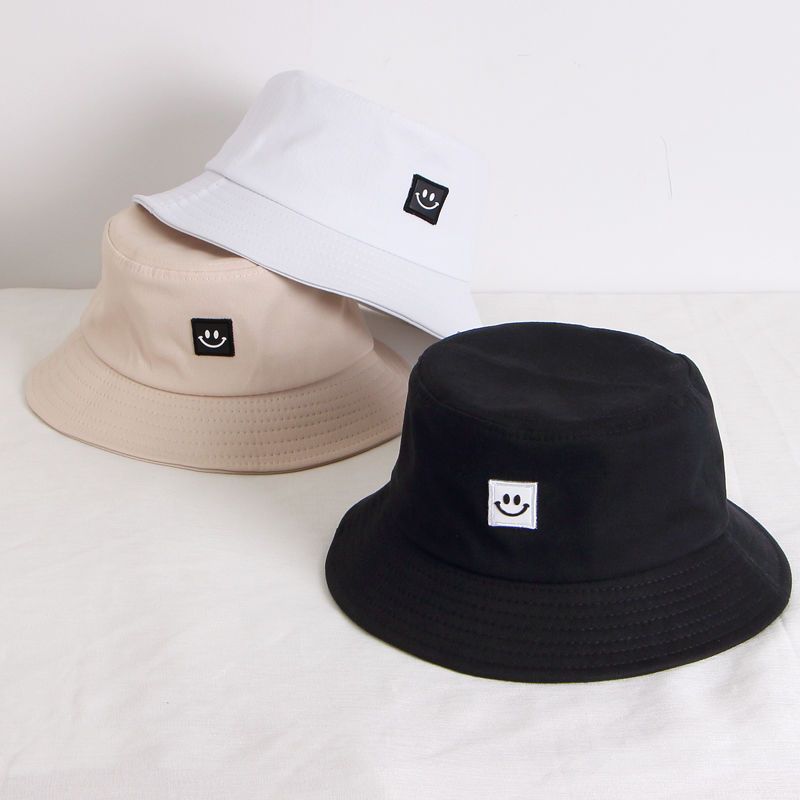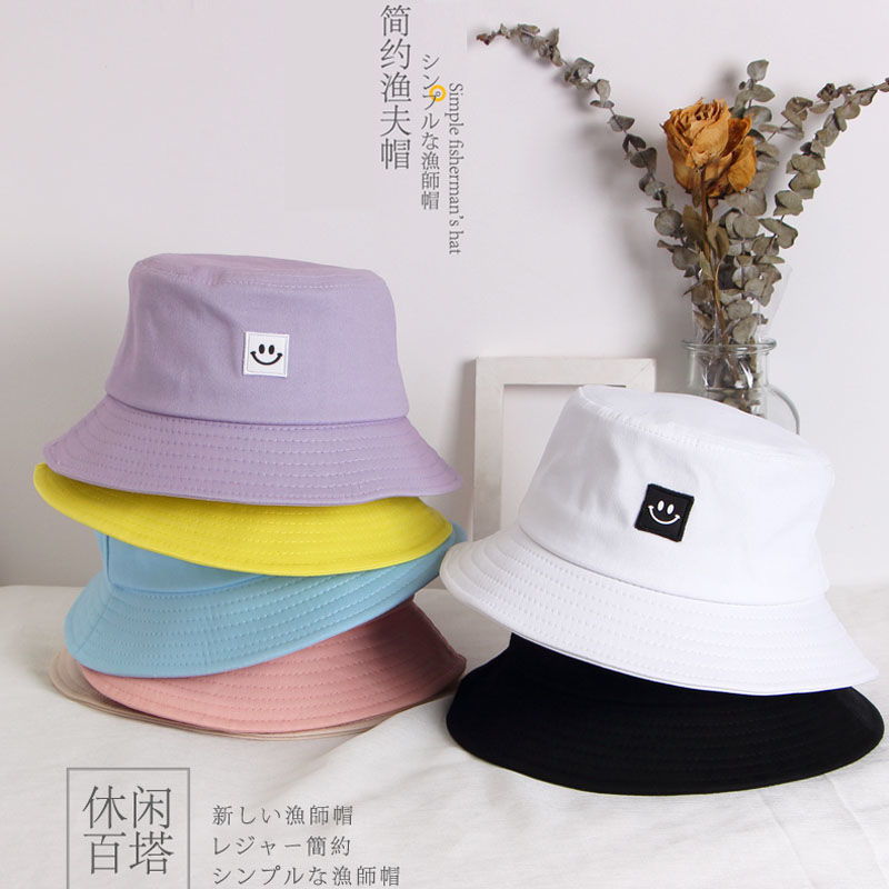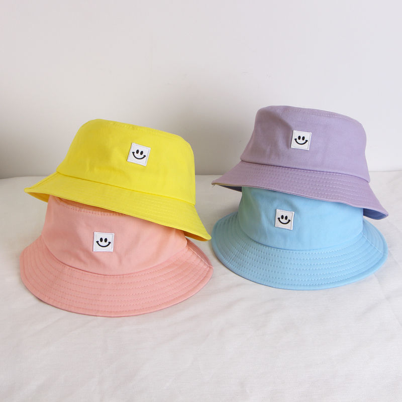 Children's Fisherman Hat Spring and Summer New Embroidered Smiley Pot Hat Sunshade Outdoor Parent-child Sun Hat for Boys and Girls