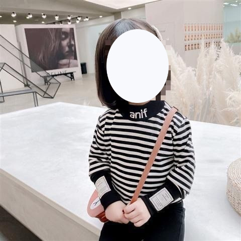 Children’s Fleece-lined Autumn and Winter Thickened Warm Top Girls’ Stylish High Collar Winter Fleece-lined Striped Base Shirt Long Sleeve 0055