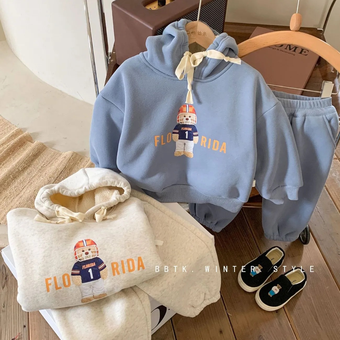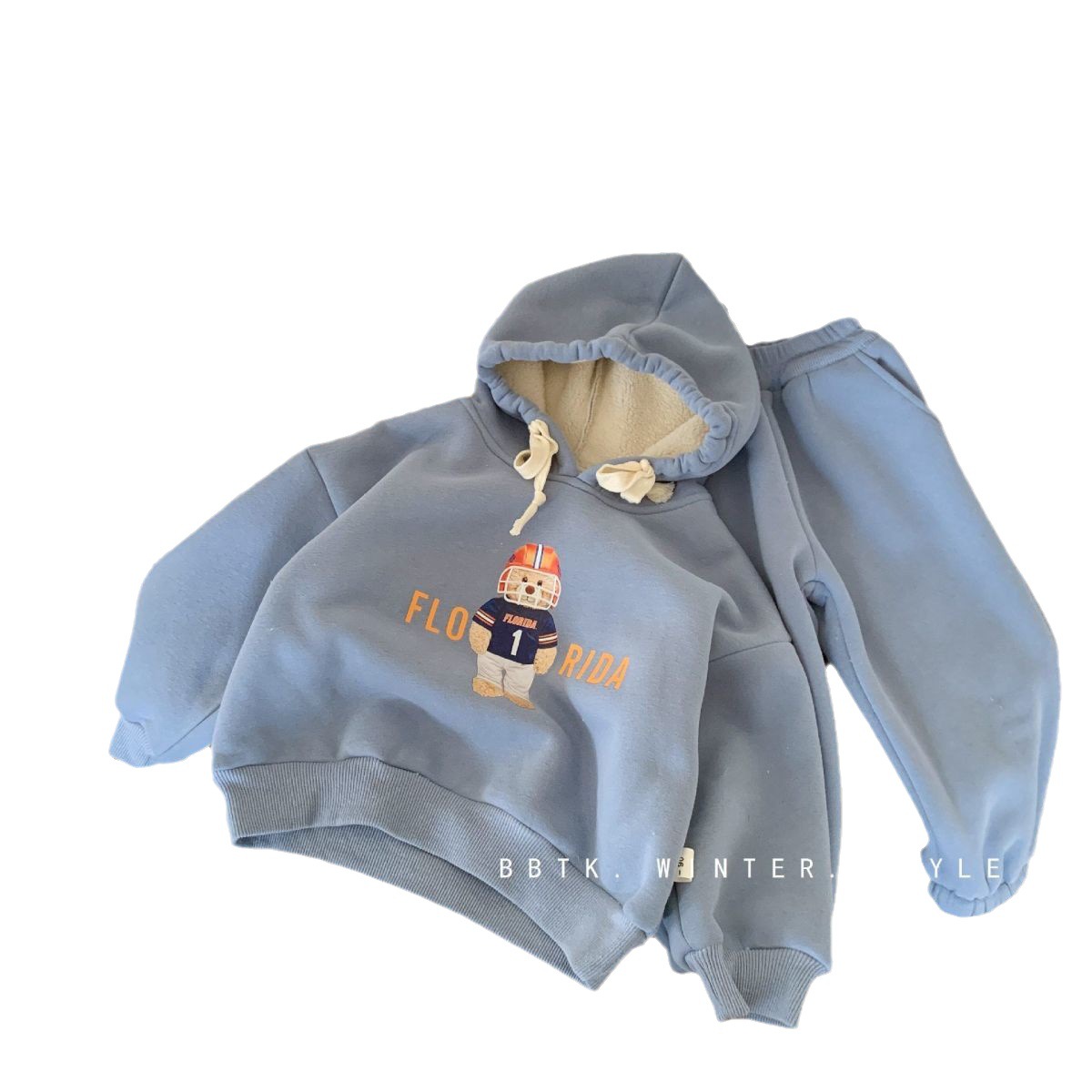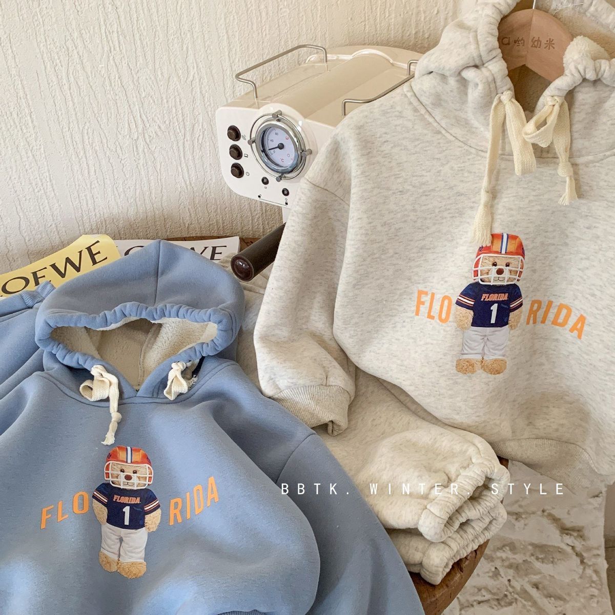 | nameOriginal | Children's fleece-lined suit autumn and winter new boys and girls bear hooded one-piece velvet thickened sweater sweatpants two-piece suit fashion |
