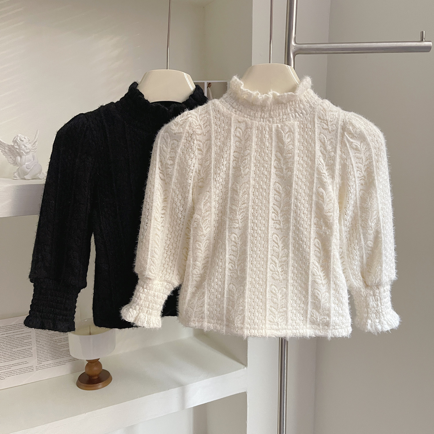 Children's fleece-lined turtleneck bottoming shirt 2024 Winter New girls' Korean style lace long sleeve thickened top delivery 1