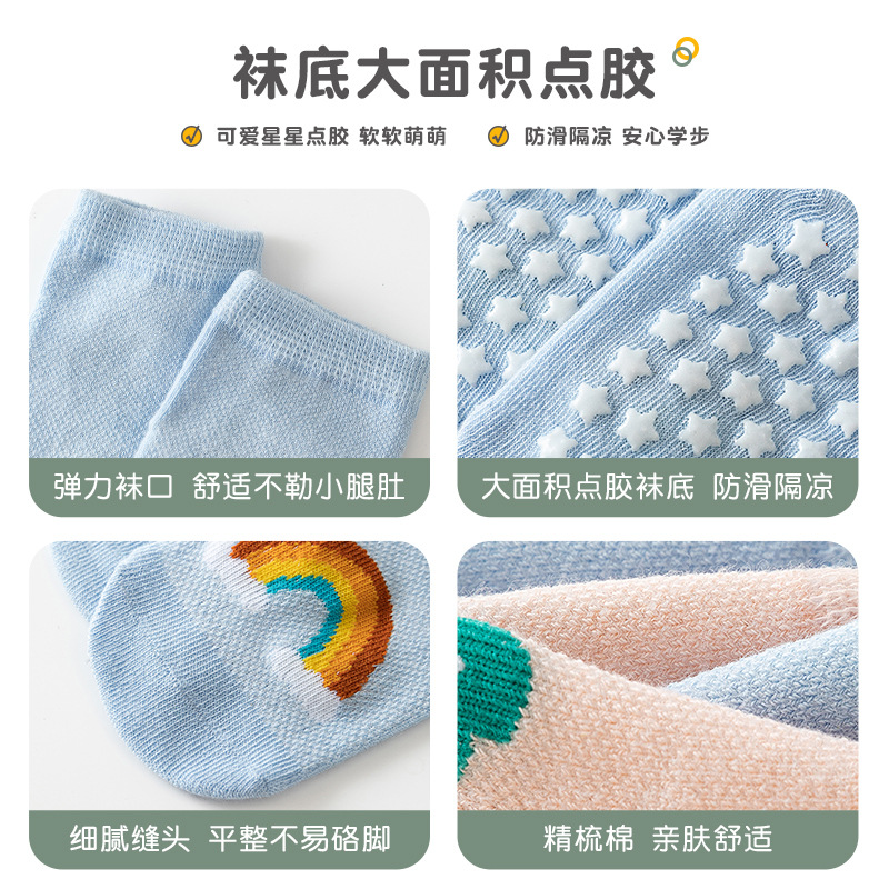 | nameOriginal | Children's floor socks spring and summer anti-slip cool-proof toddler socks baby boys and girls thin mesh baby dispensing socks |