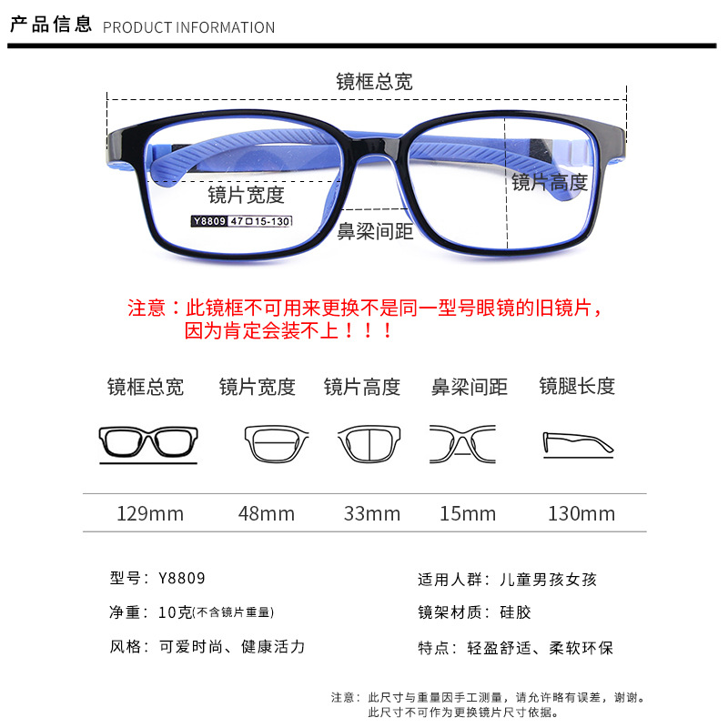 | nameOriginal | Children's Frame Glasses for Boys and Girls 5-10 Years Old Comfortable Silicone Elastic Legs for Primary School Students Flat Glasses Children's Glasses Frame |