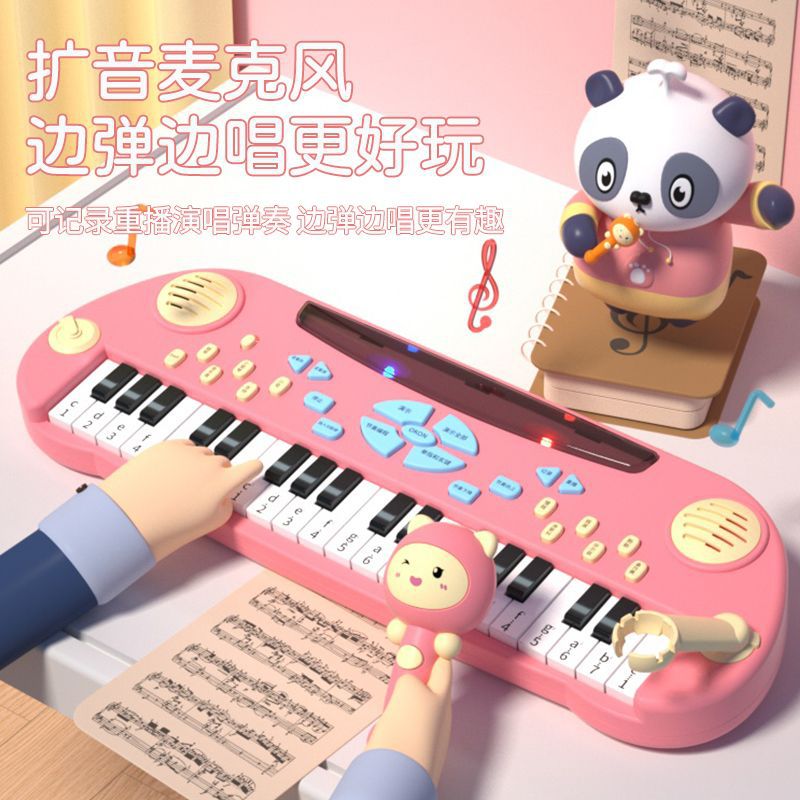 Children’s Gift Multifunctional Musical Instrument Beginner Baby Microphone Electronic Piano Girl’s Birthday Piano Toy Educational Playing