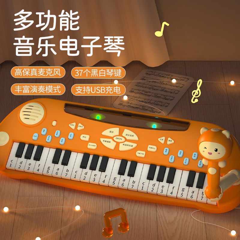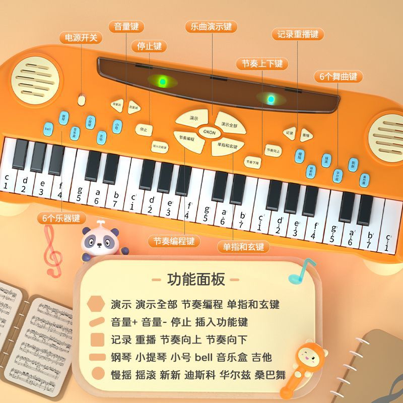 Children's Gift Multifunctional Musical Instrument Beginner Baby Microphone Electronic Piano Girl's Birthday Piano Toy Educational Playing