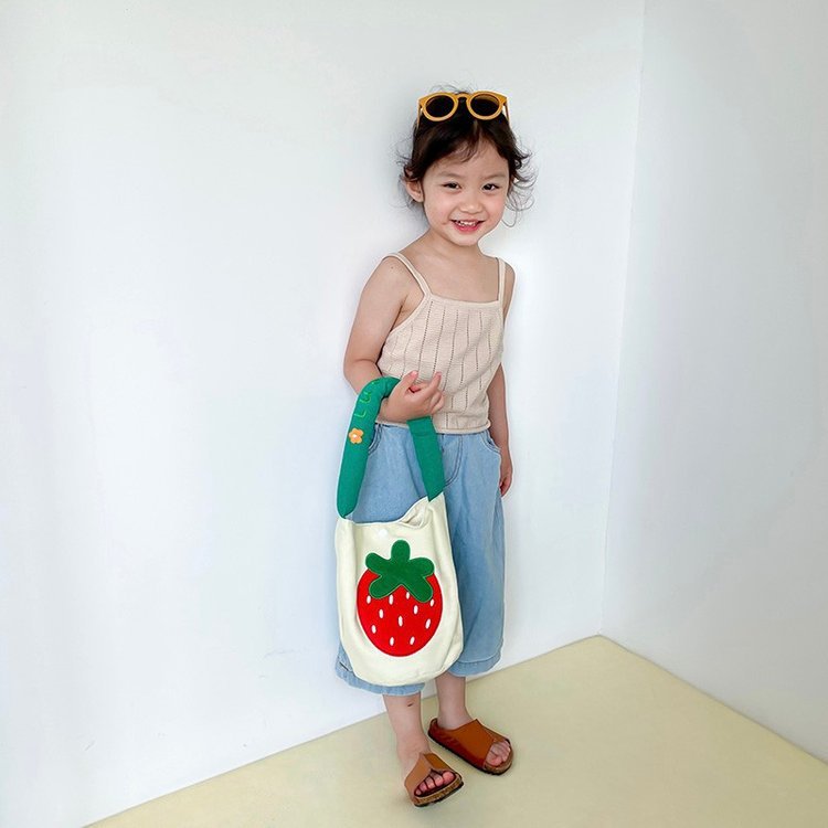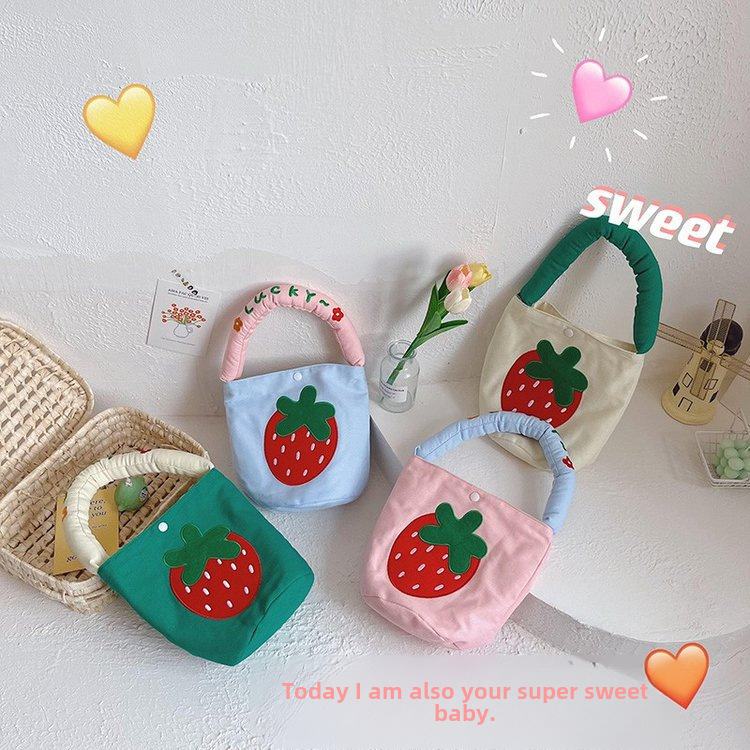 | nameOriginal | Children's Girl's Girl's Fashionable Small Satchel Bag Canvas Strawberry Flower Small Chanel Style Cute Bag |