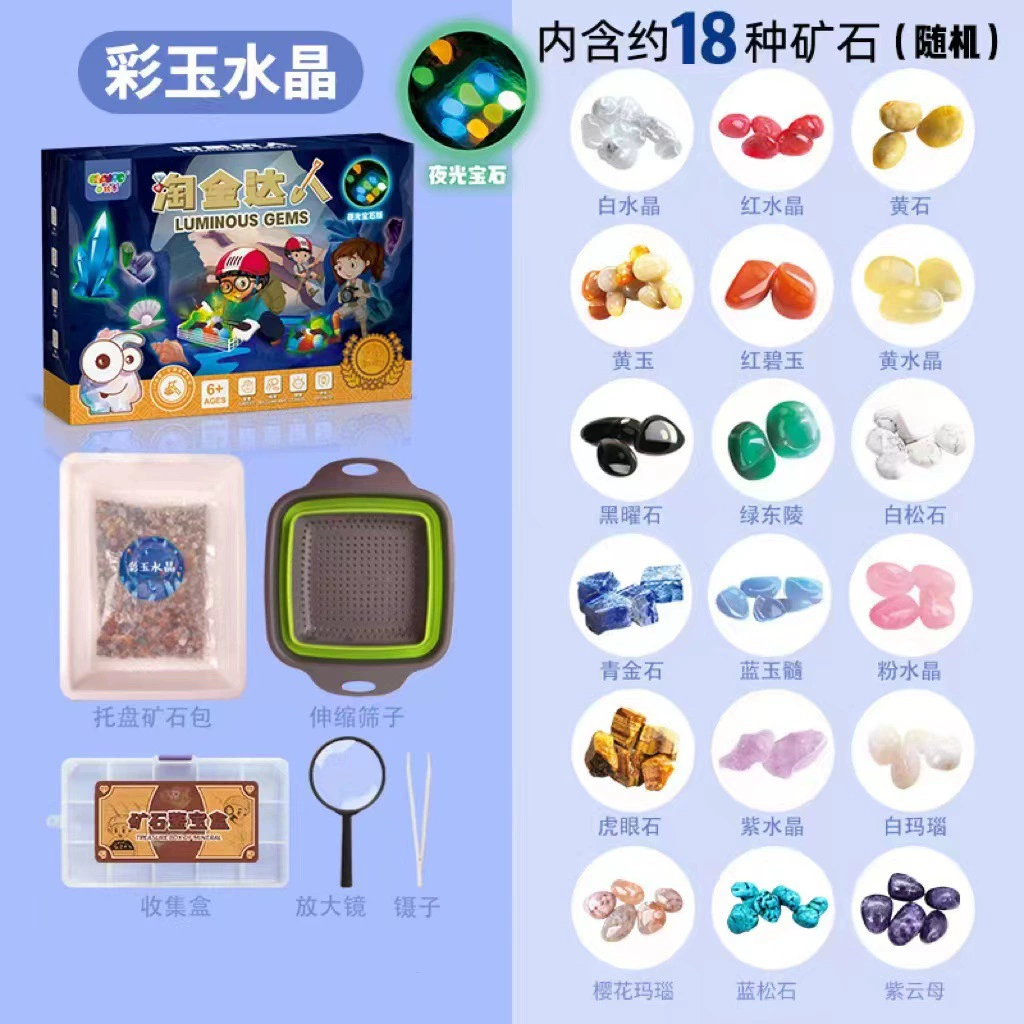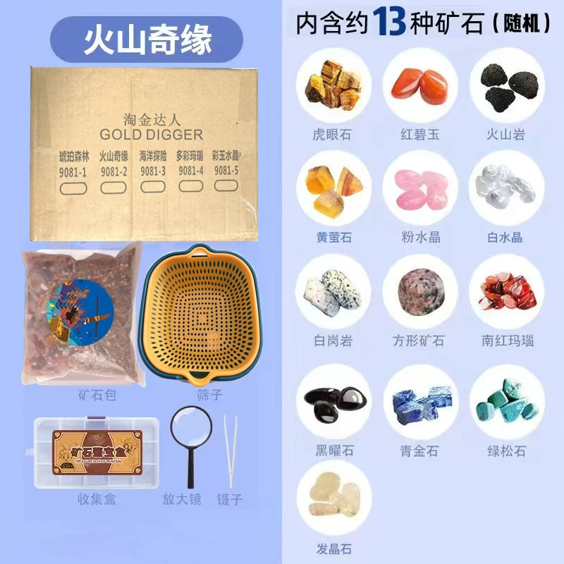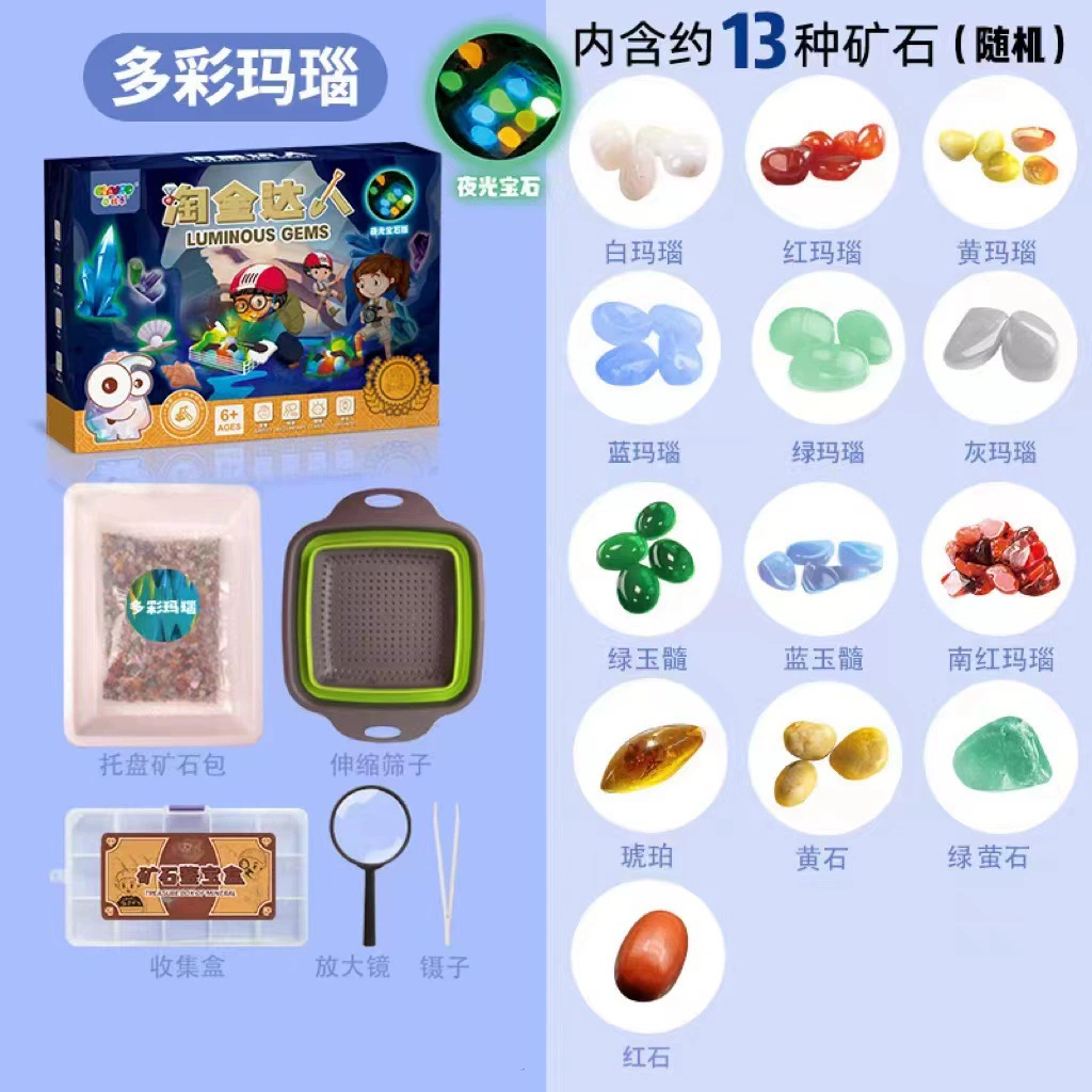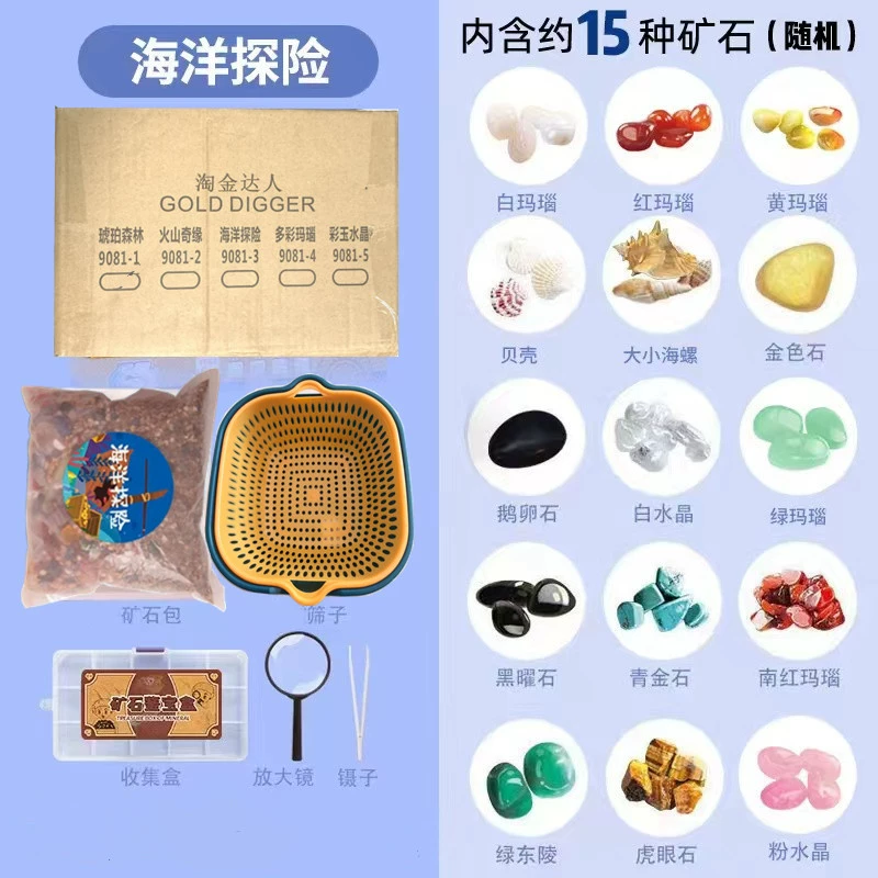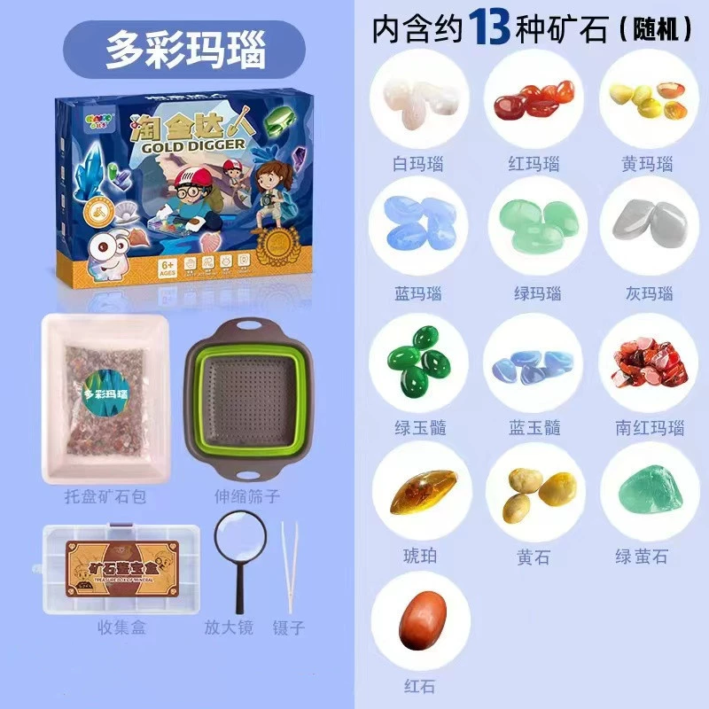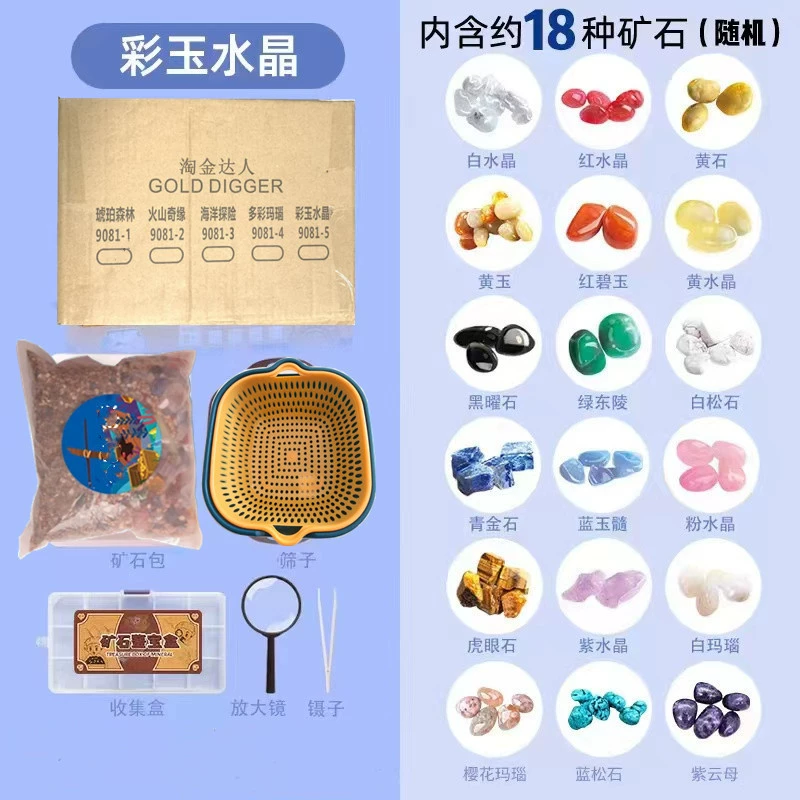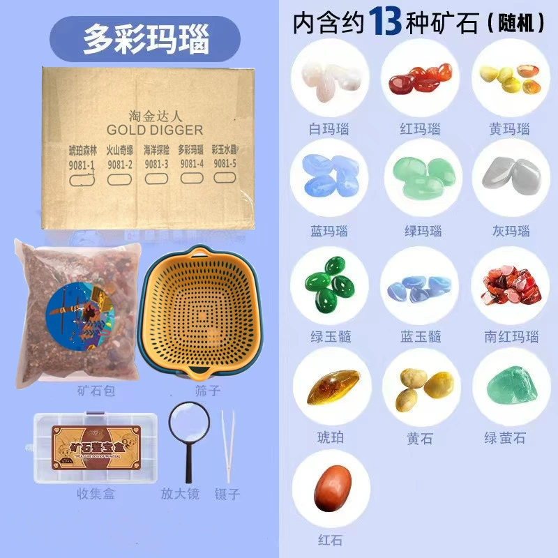 | nameOriginal | Children's gold mining sand toy treasure hunt adventure ore sandbag natural crystal agate amber archaeological blind box gift |