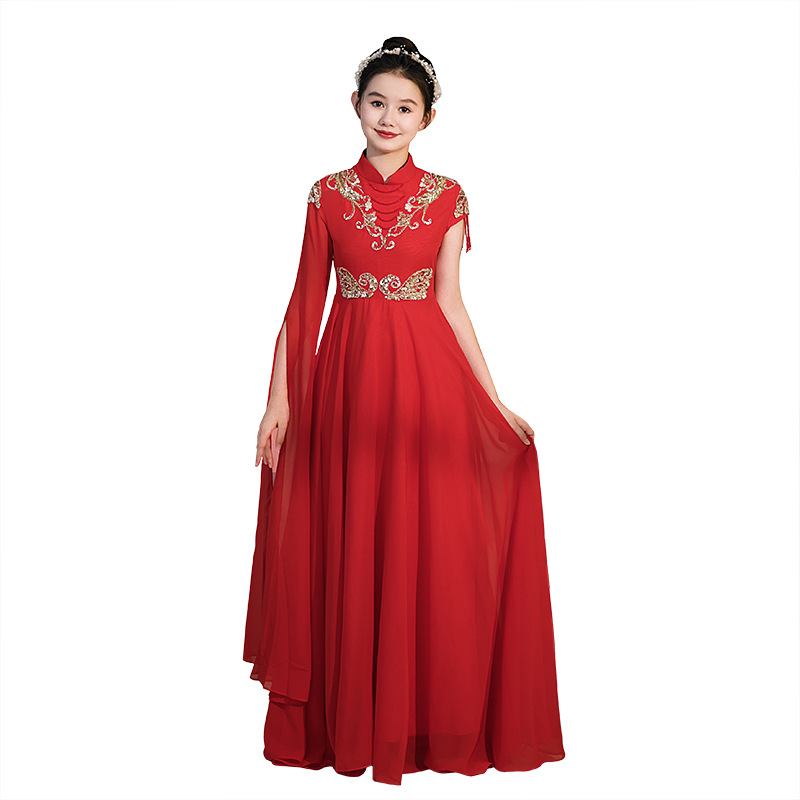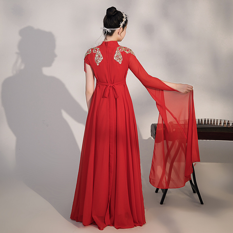 | nameOriginal | Children's guzheng costume girls' Chinese-style classical dance performance costume little girl host red art exam dress |