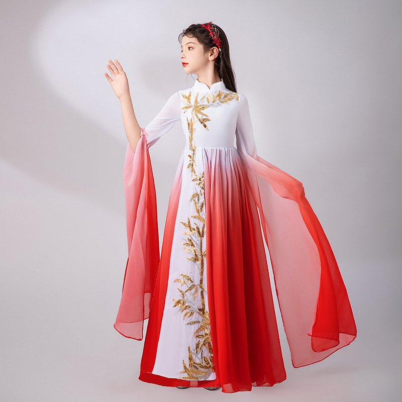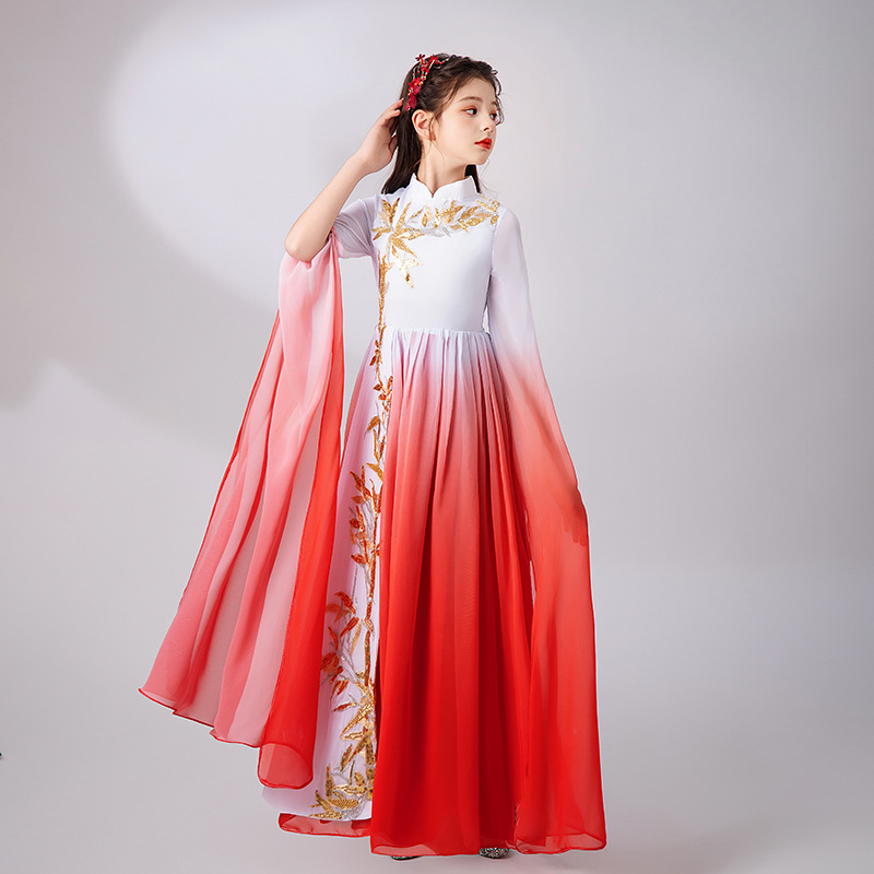 | nameOriginal | Children's Guzheng Performance Clothes Girls' Hanfu Chinese Style Long Dress Elegant Water Sleeve Dance Clothes Piano Flute Performance Clothes |