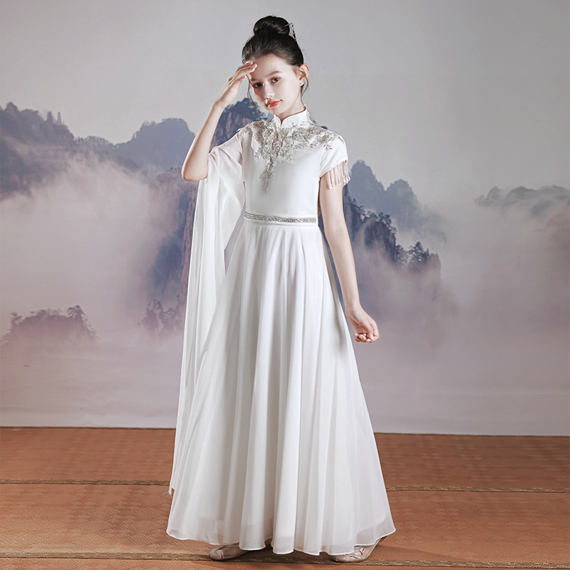 | nameOriginal | Children's Guzheng Performance Clothing 2023 New Girls Super Fairy Chinese Style Performance Clothing Art Test Host White Evening Dress |