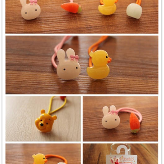 | nameOriginal | Children's hair accessories baby rubber band cartoon jelly color rabbit little yellow duck Winnie the Pooh resin accessories diy |