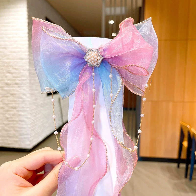 | nameOriginal | Children's hair accessories girls streamer bow hairpin baby pearl headdress Korean style head flower princess braided hairpin |