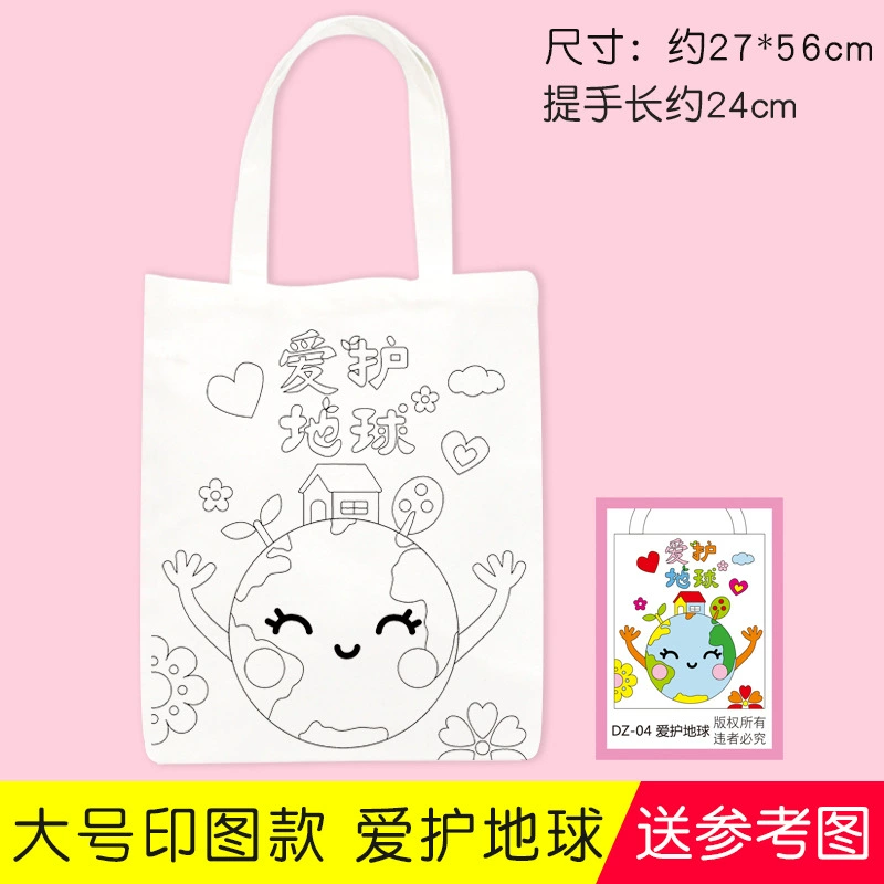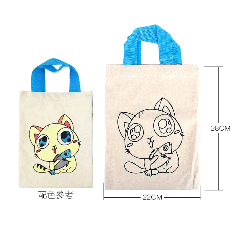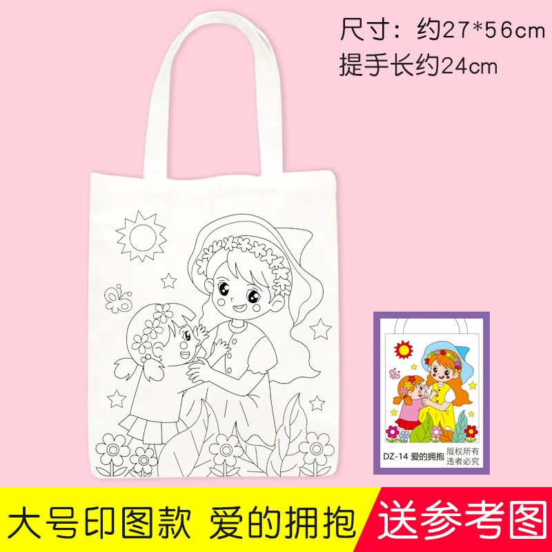 | nameOriginal | Children's handmade DIY painted Mother's Day canvas bag coloring painting white bag free graffiti creative carrying bag  |