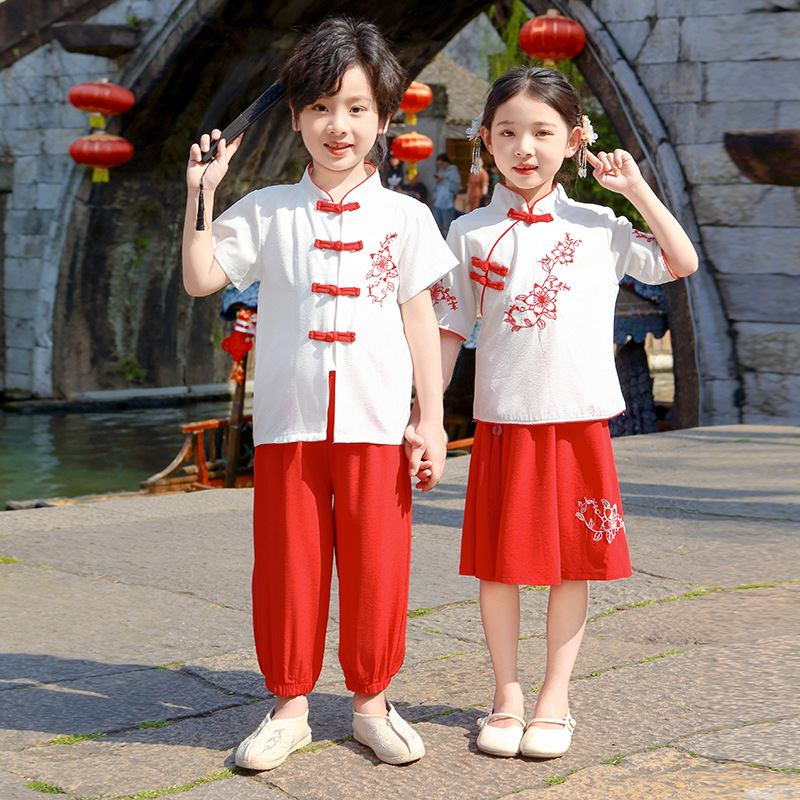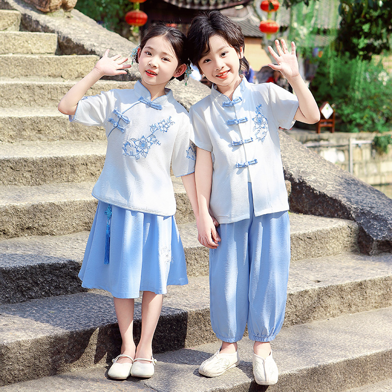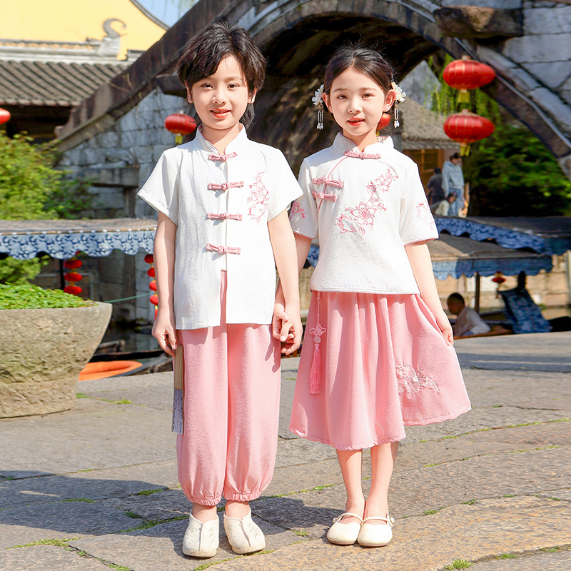 | nameOriginal | Children's Hanfu 2024 Summer New Antique Embroidered Performance Suit for Boys and Girls Thin Short-sleeved Chinese Style Tang Suit |