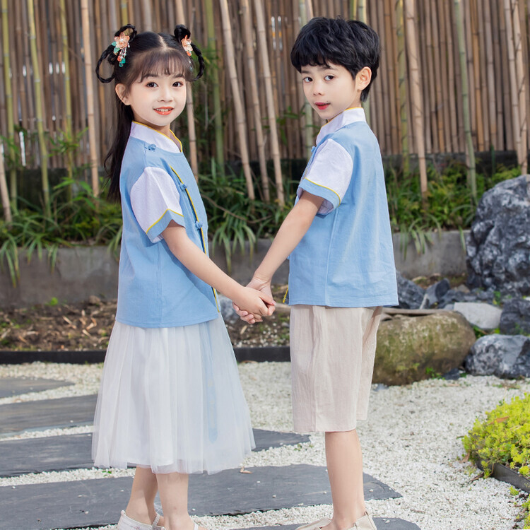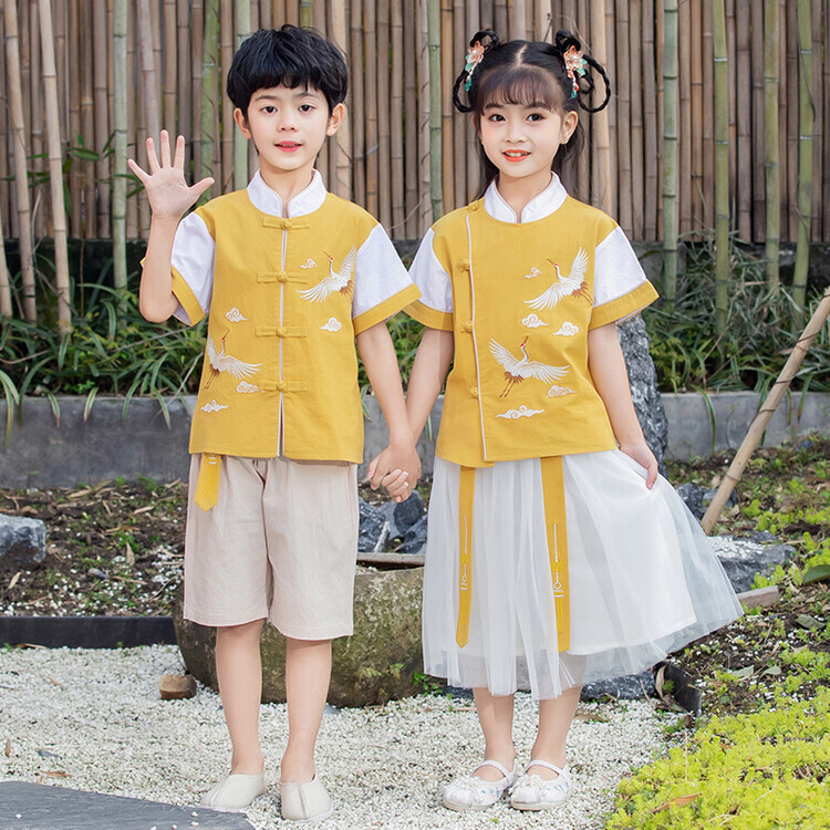 Children's Hanfu Boys' Chinese Style Baby's Kindergarten Short-sleeved Suit Tang Suit Girls' Children's Children's 1st Performance Suit
