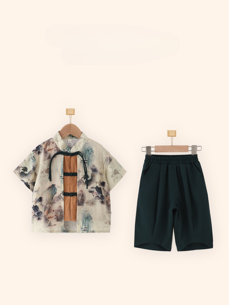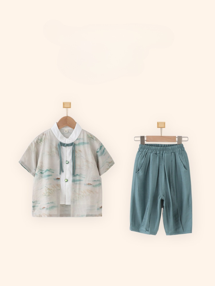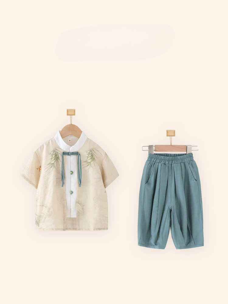 Children's Hanfu Boys' Short-sleeved suit Summer National Style New Chinese Fake Two-piece Five-Six-One Kindergarten Performance Costume