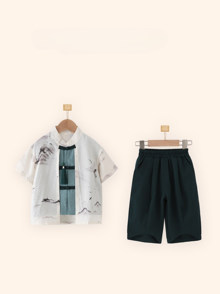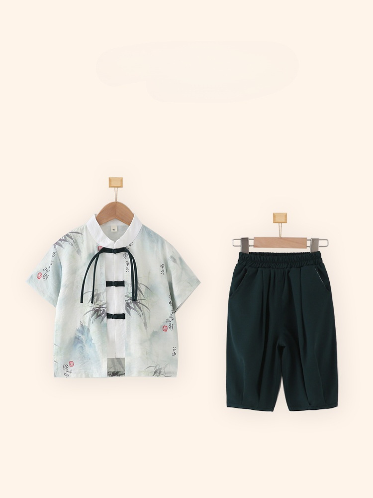 Children’s Hanfu Boys’ Short-sleeved suit Summer National Style New Chinese Fake Two-piece Five-Six-One Kindergarten Performance Costume