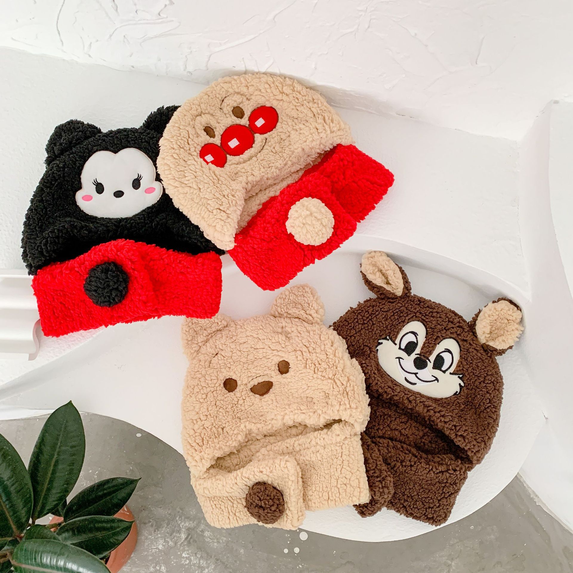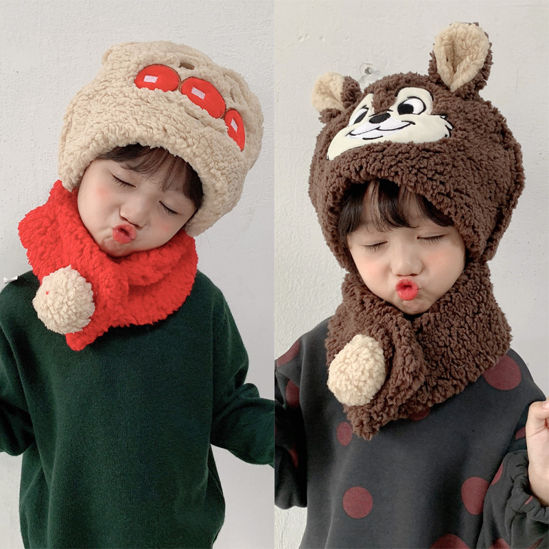 Children's hat autumn and winter cartoon bread Superman ear protection plush warm hat super cute baby scarf integrated hat