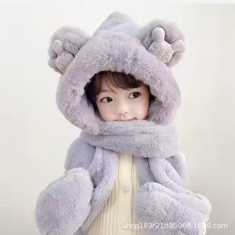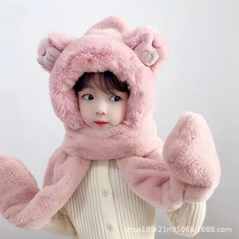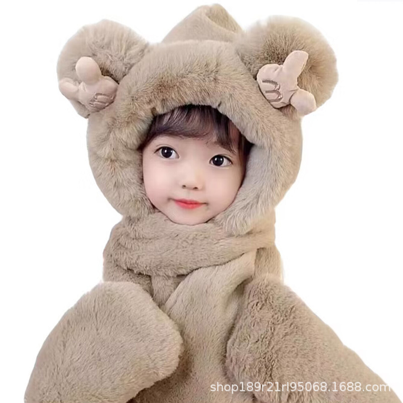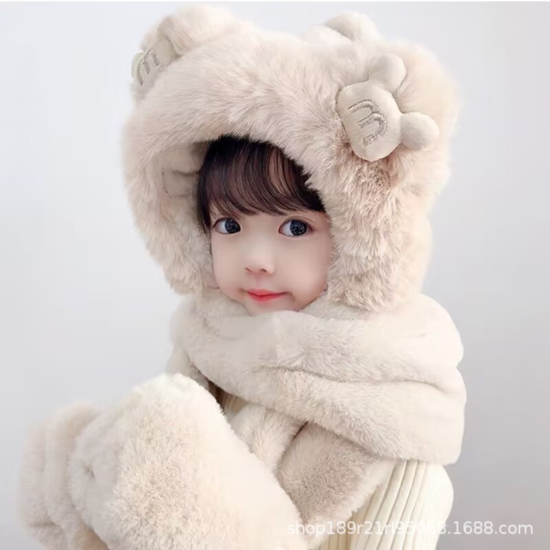 | nameOriginal | Children's hat scarf gloves three-piece Winter fleece-lined thickened girls' one-piece hat for boys and older children warm windproof hat |