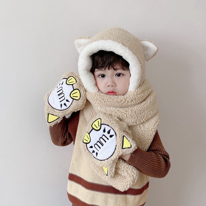 | nameOriginal | Children's hat scarf gloves winter thickened warm boys' and girls' three-piece set baby cycling windproof hat |