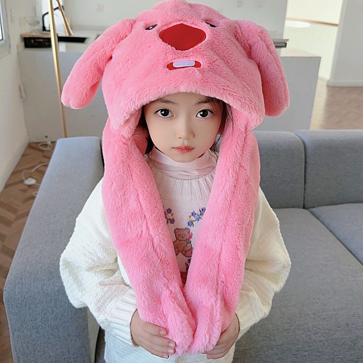 | nameOriginal | Children's hat scarf integrated new TikTok hat ears moving thickened warm windproof male and female baby hat winter |